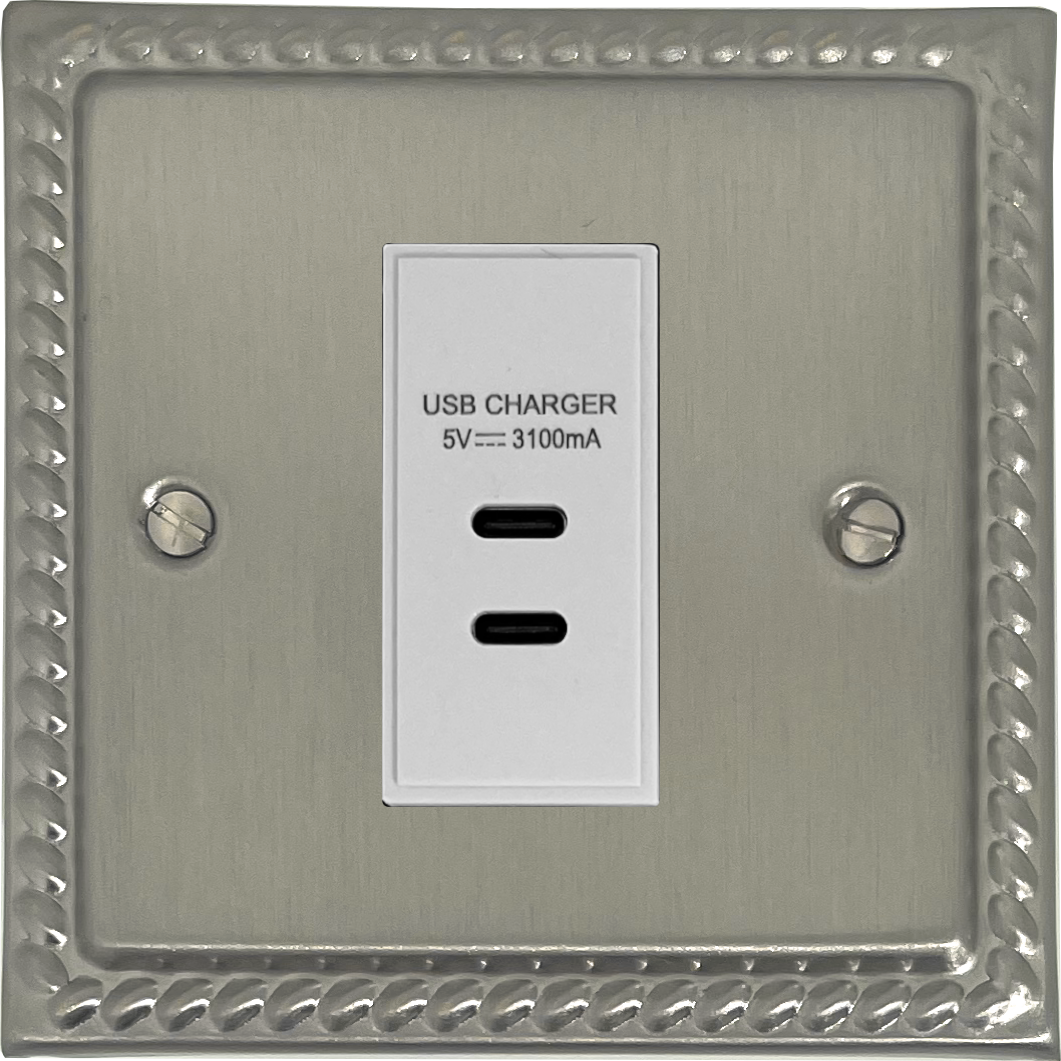 Georgian Satin Nickel USB Charger (2x USB-C) (1 Gang/White Insert) - G+H MSN42W