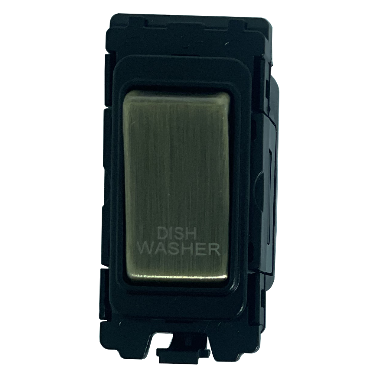 G&H Electrical Grid Switch Antique Brass and Black DP Switch - 'Dishwasher' - G+H G-476AB-DW