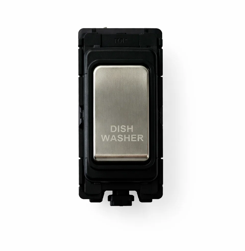 G&H Electrical Grid Switch Brushed Steel and Black DP Switch - 'Dishwasher' - G+H G-476SS-DW