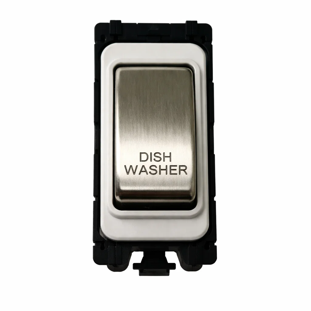 G&H Electrical Grid Switch Brushed Steel and White DP Switch - 'Dishwasher'