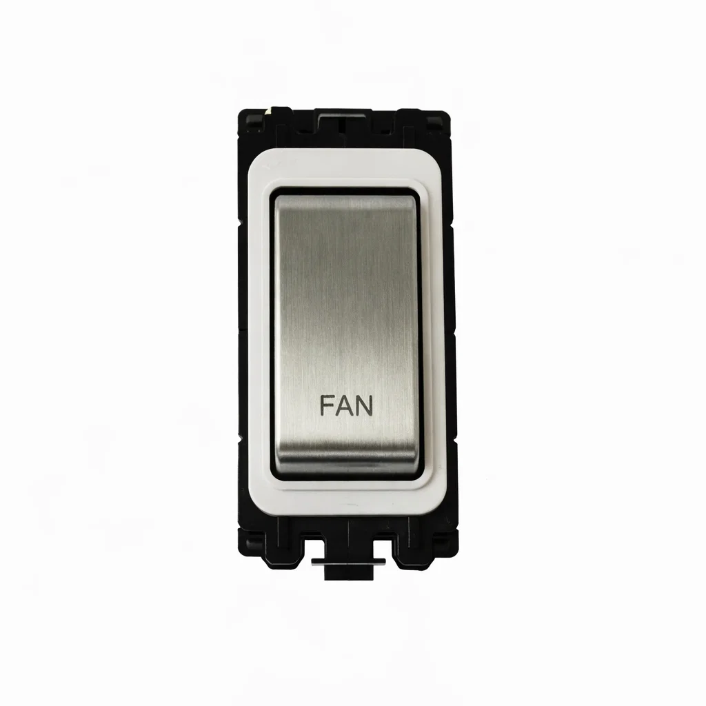 G&H Electrical Grid Switch Brushed Steel and White DP Switch - 'Fan' - G+H G-576SS-FN