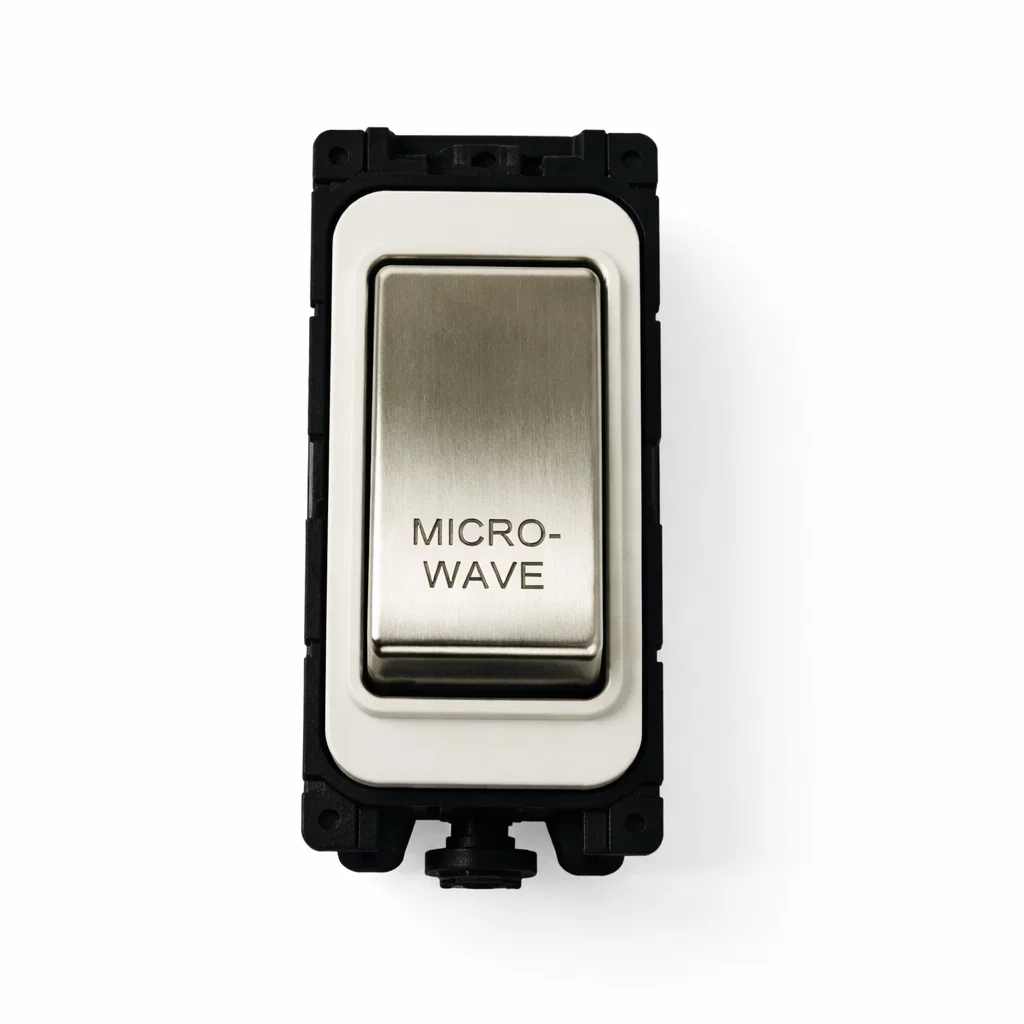 G&H Electrical Grid Switch Brushed Steel and White DP Switch - 'Microwave' - G+H G-576SS-MW