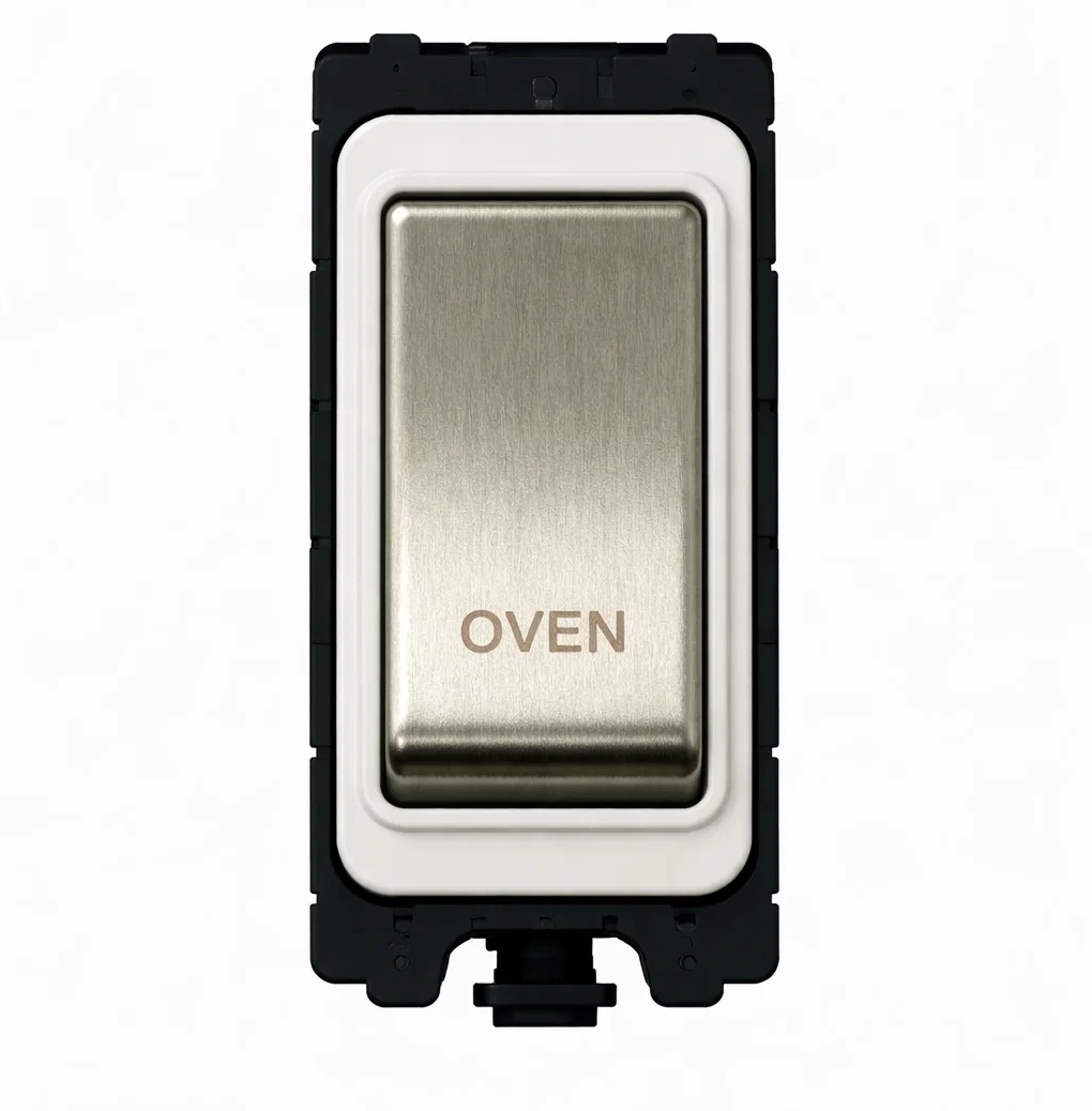 G&H Electrical Grid Switch Brushed Steel and White DP Switch - 'Oven' - G+H G-576SS-OV
