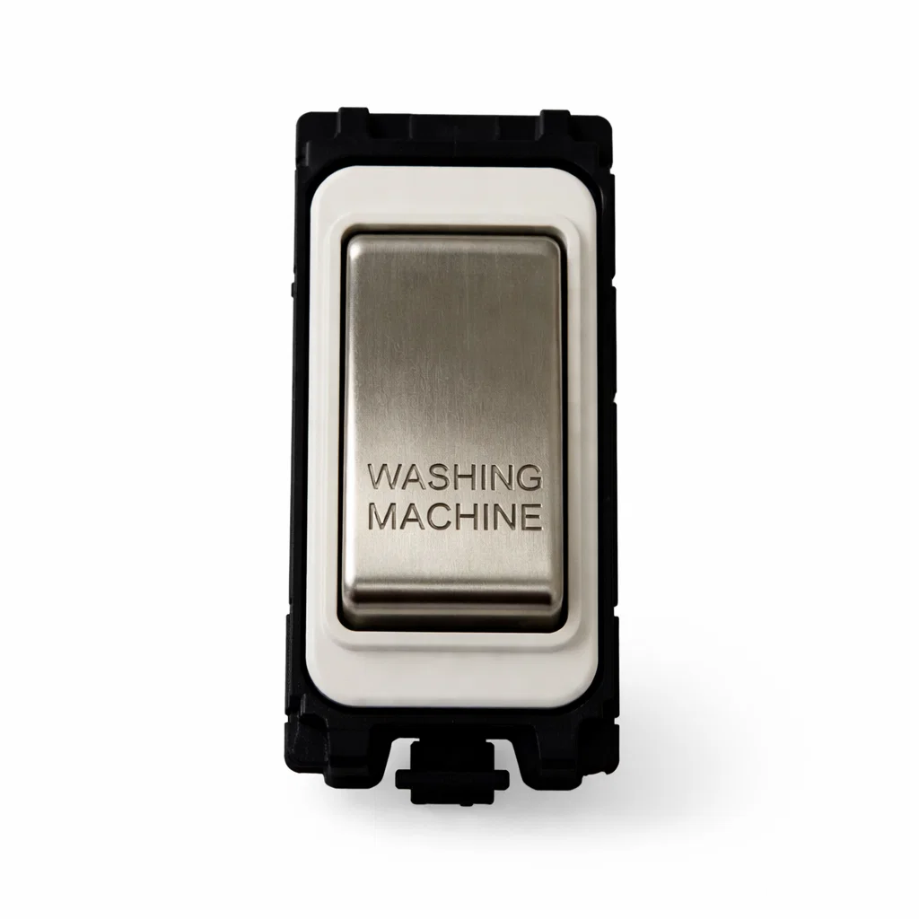 G&H Electrical Grid Switch Brushed Steel and White DP Switch - 'Washing Machine'