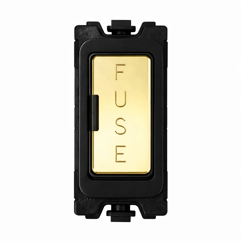 G&H Electrical Grid Switch Polished Brass and Black 13A Fuse Holder