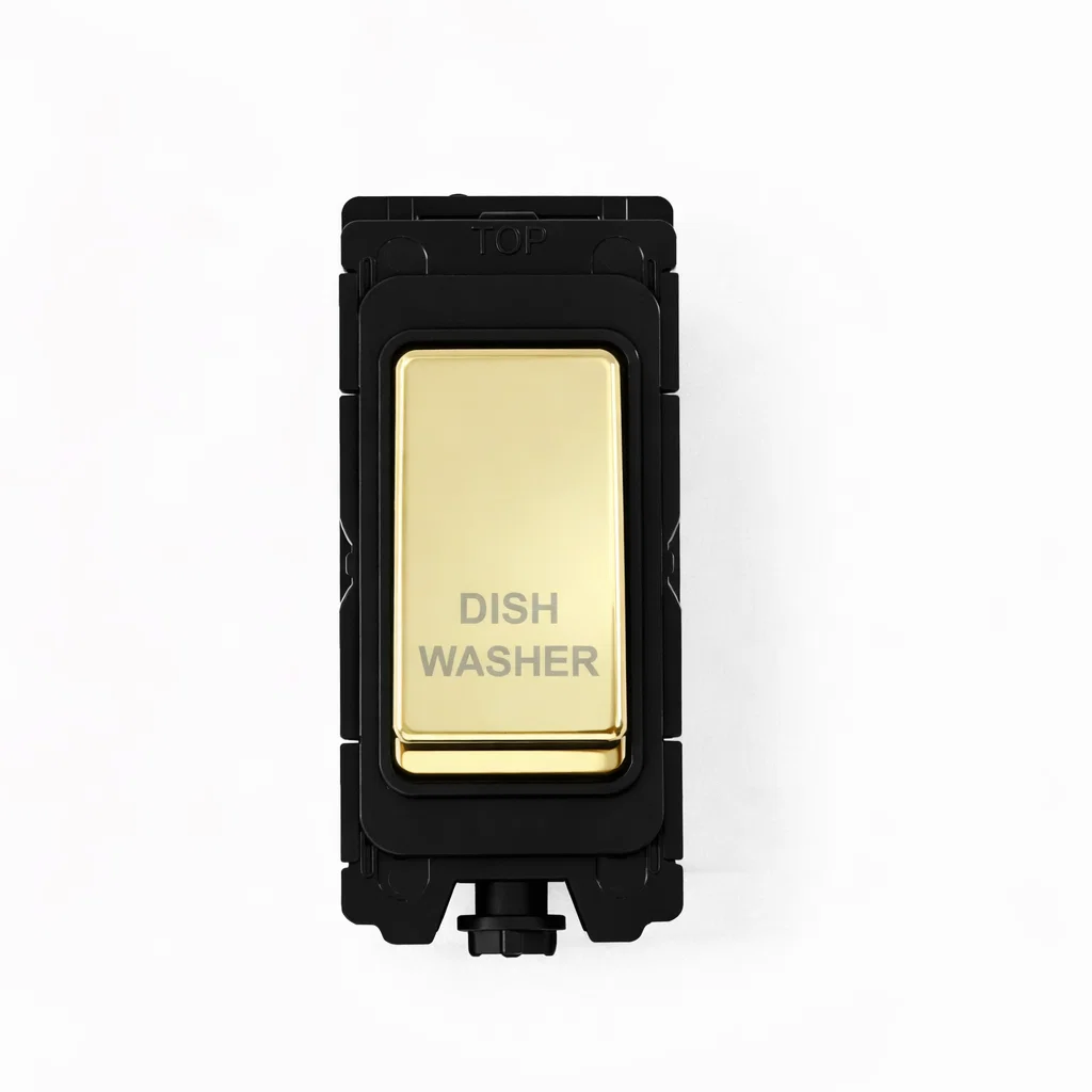 G&H Electrical Grid Switch Polished Brass and Black DP Switch - 'Dishwasher' - G+H G-476PB-DW
