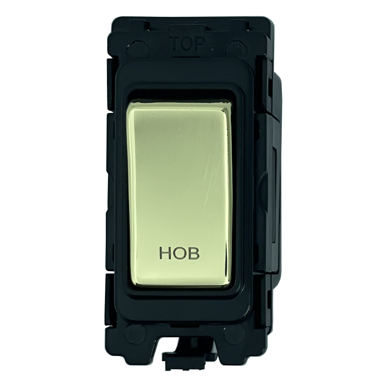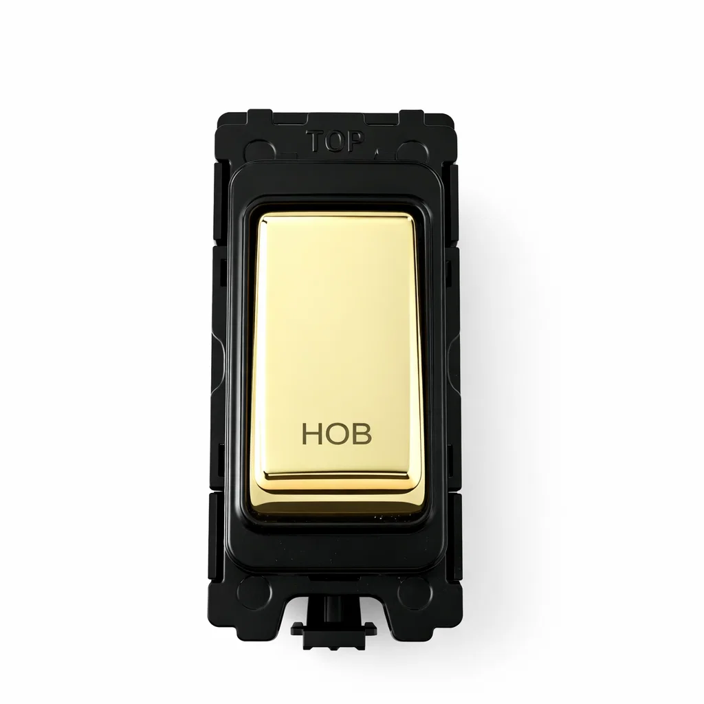 G&H Electrical Grid Switch Polished Brass and Black DP Switch - 'Hob' - G+H G-476PB-HB