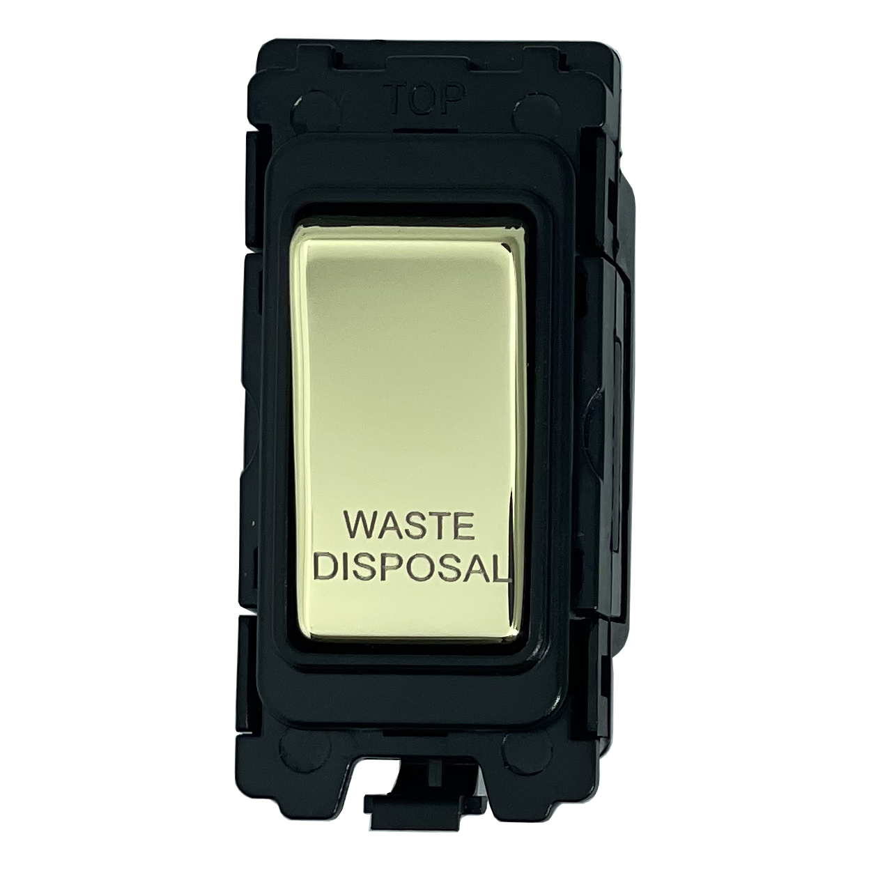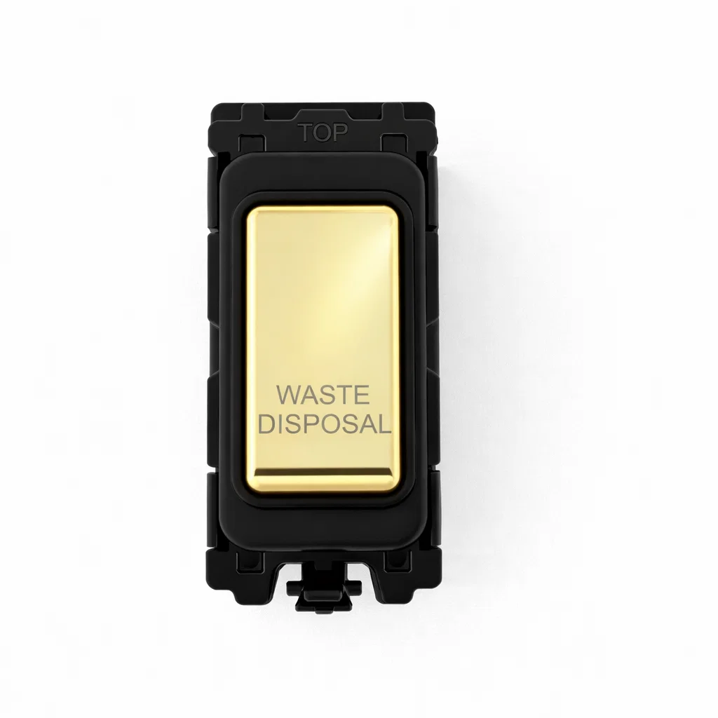 G&H Electrical Grid Switch Polished Brass and Black DP Switch - 'Waste Disposal' - G+H G-476PB-WD