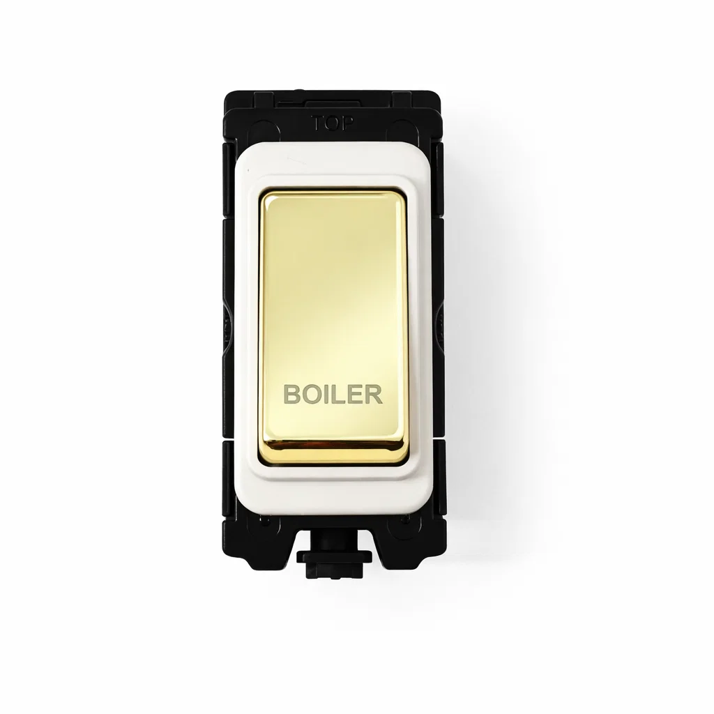 G&H Electrical Grid Switch Polished Brass and White DP Switch - 'Boiler'