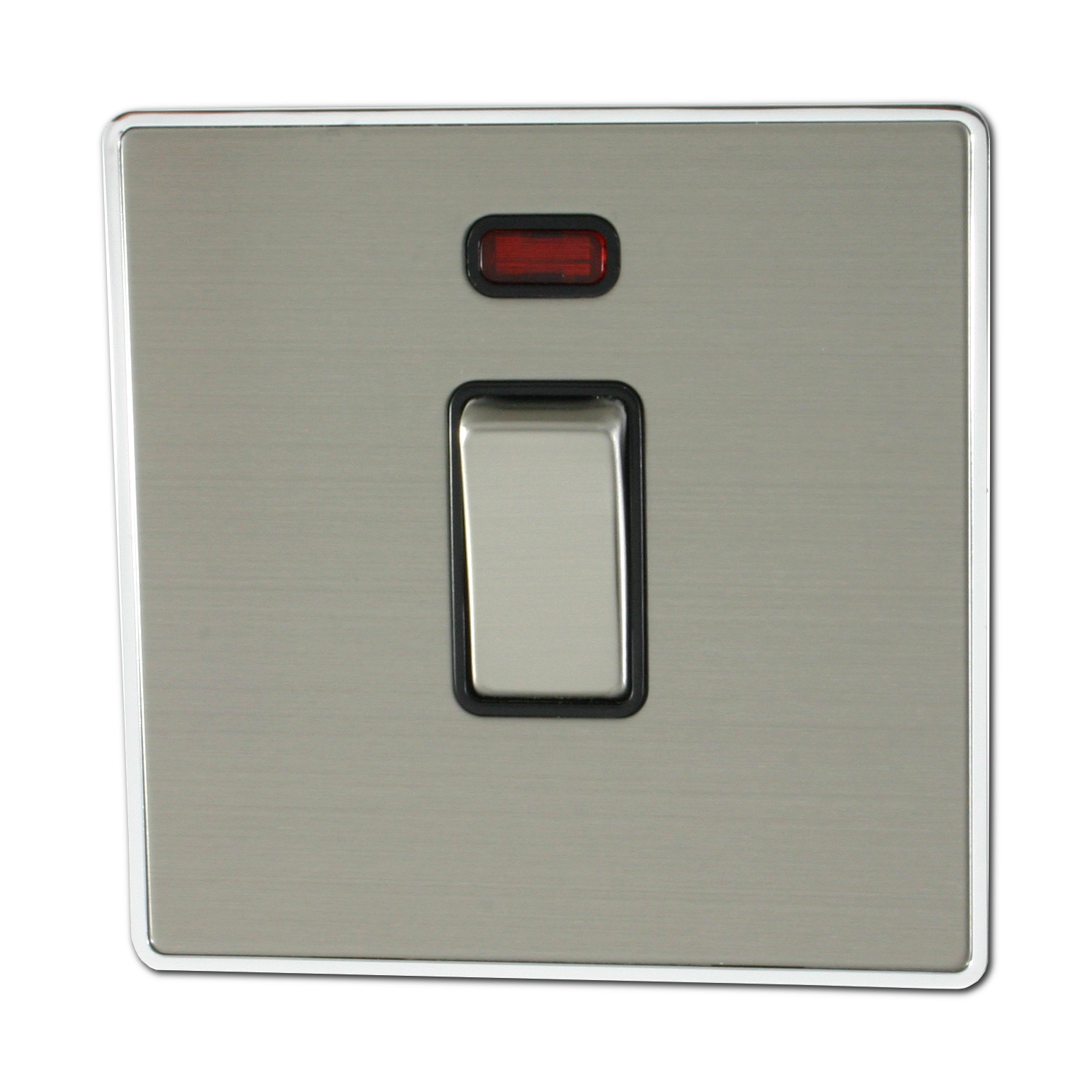Lexus Screwless Brushed Steel 20 Amp DP Switch with Neon (Black Inserts) - G+H LSS326
