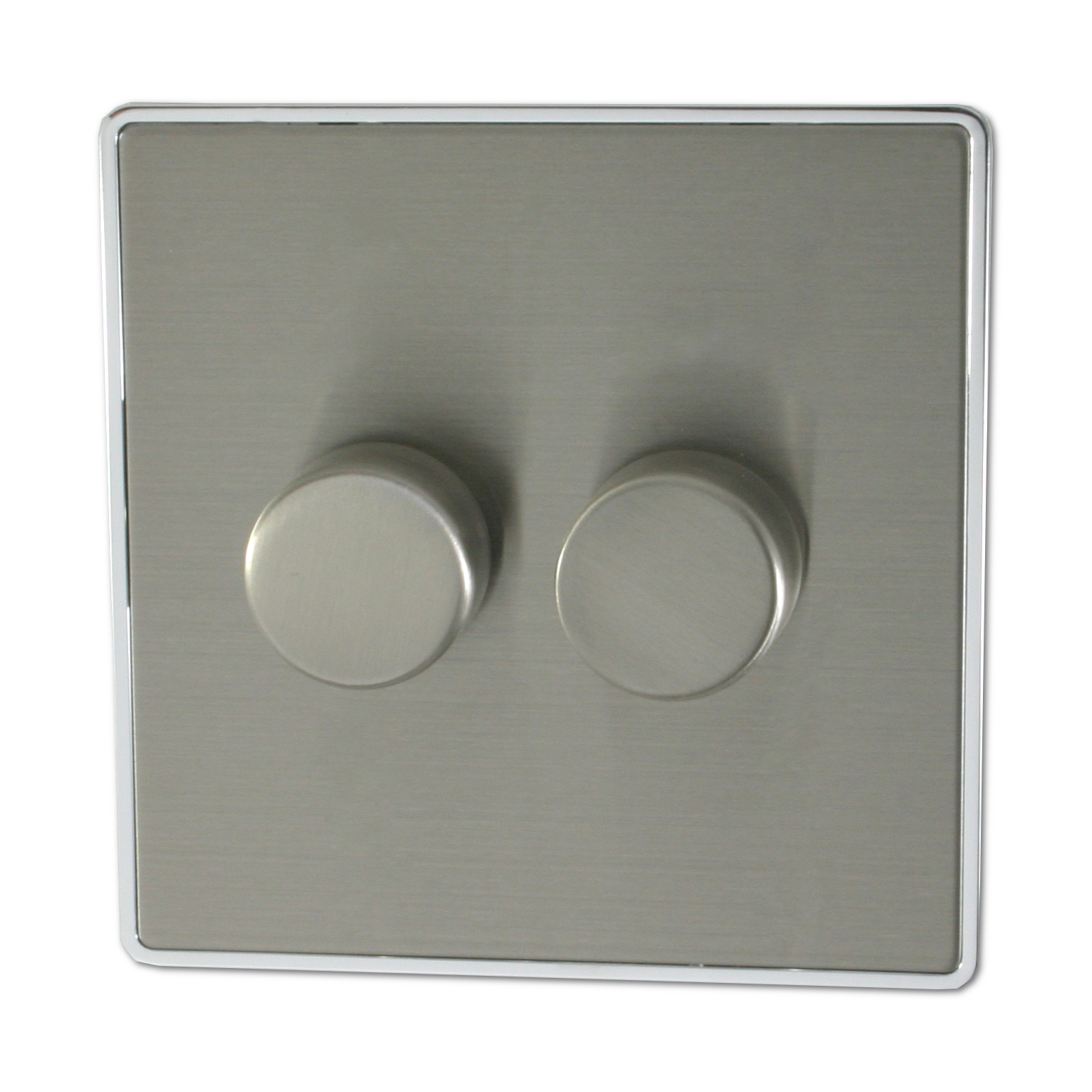 Lexus Screwless Brushed Steel LED Dimmer Switch (2 Gang/120W)