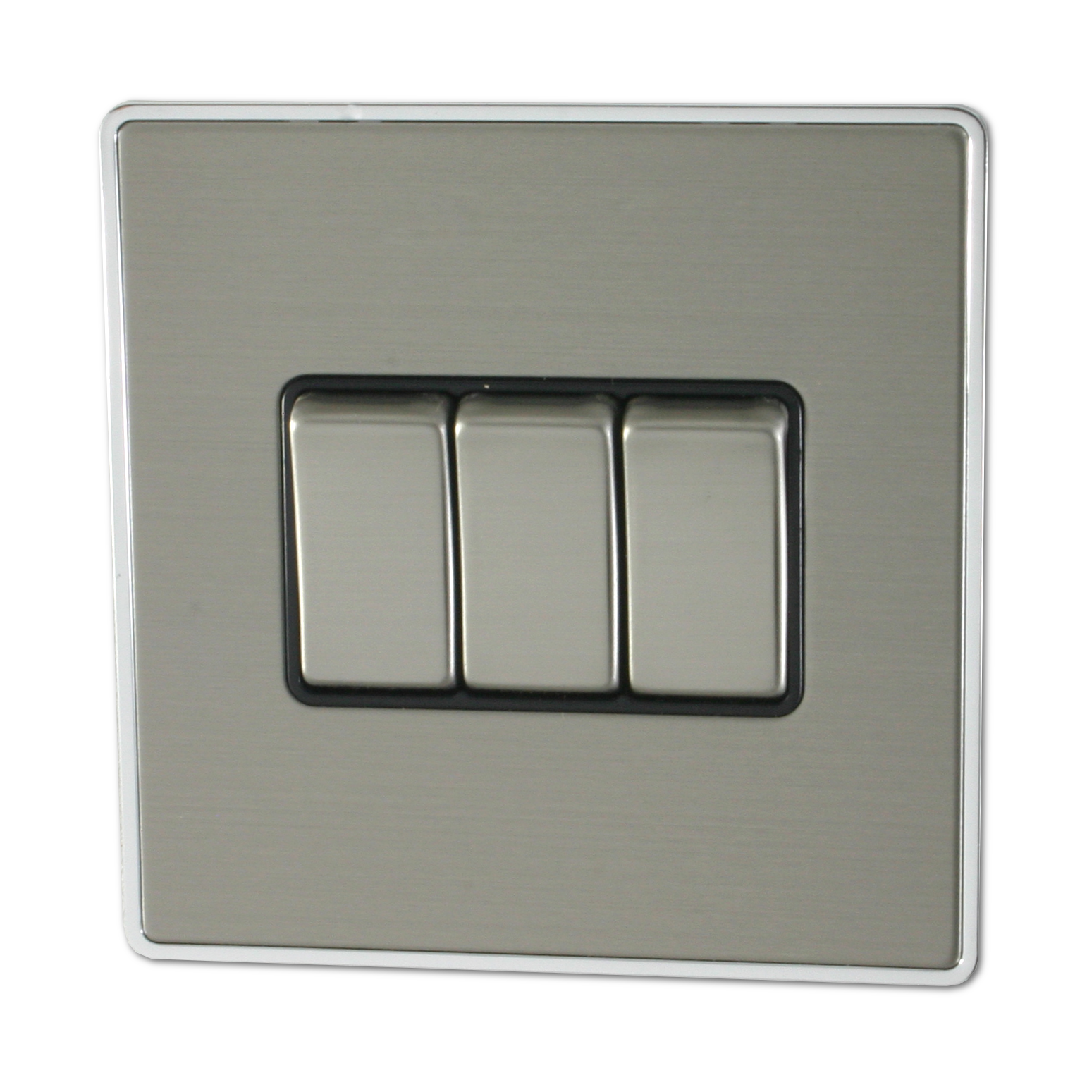 Lexus Screwless Brushed Steel Switch (3 Gang) - G+H LSS303