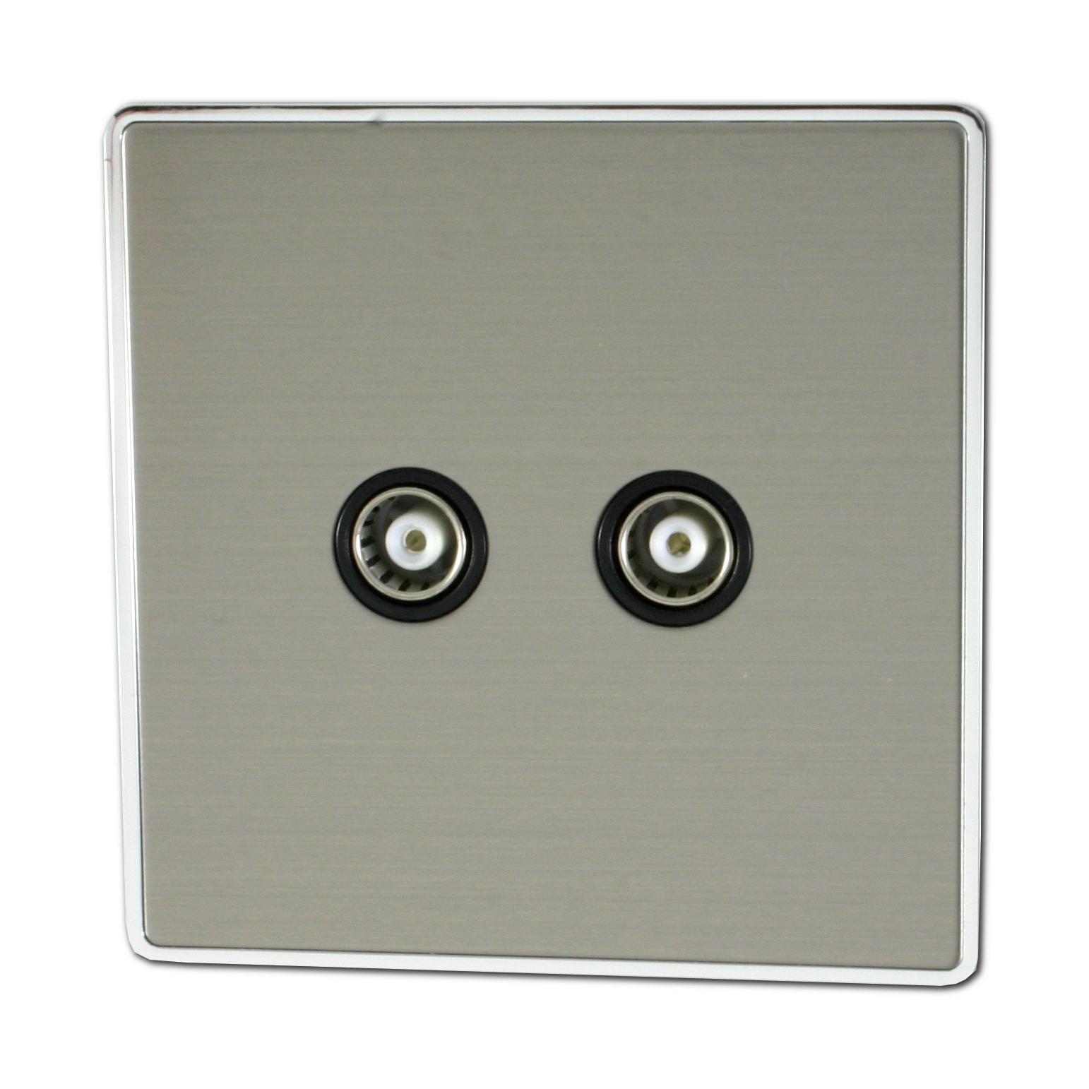 Lexus Screwless Brushed Steel TV Point (2 Gang/Black Insert) - G+H LSS36B