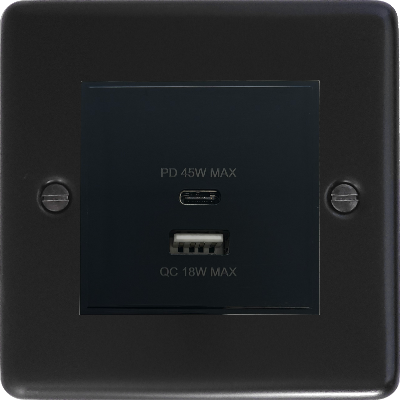 Matt Black Antique Brass USB Charger (Dual USB A + C Quick Charge) - G+H CFB43B