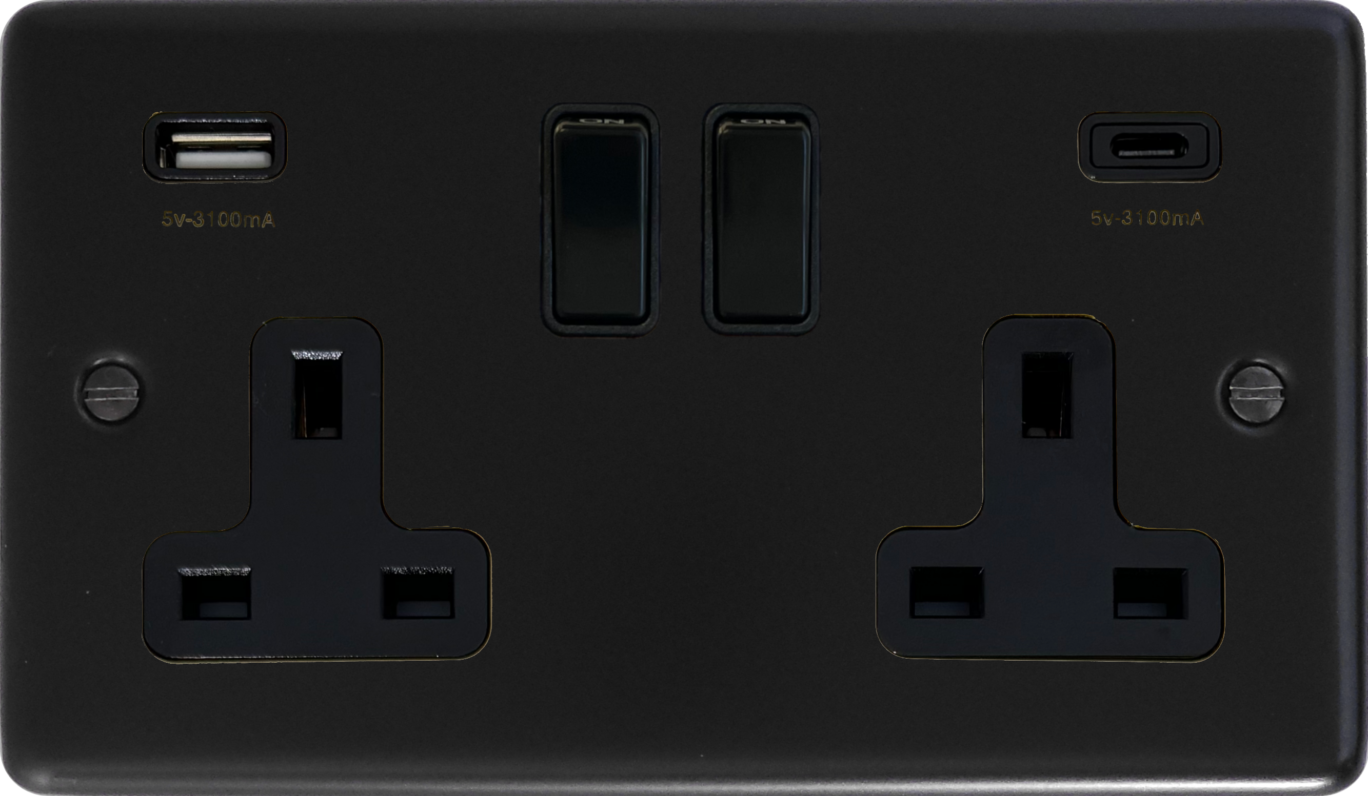 Matt Black Double Socket with USB (2 Gang/USB-A and USB-C) - G+H CFB911B