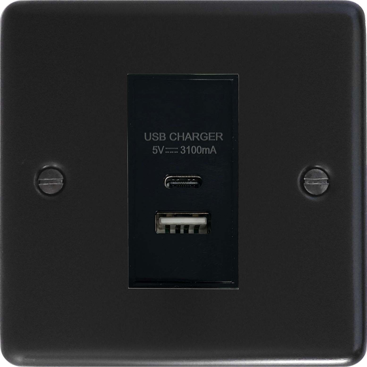 Matt Black USB Charger (USB-A and USB-C) - G+H CFB41B