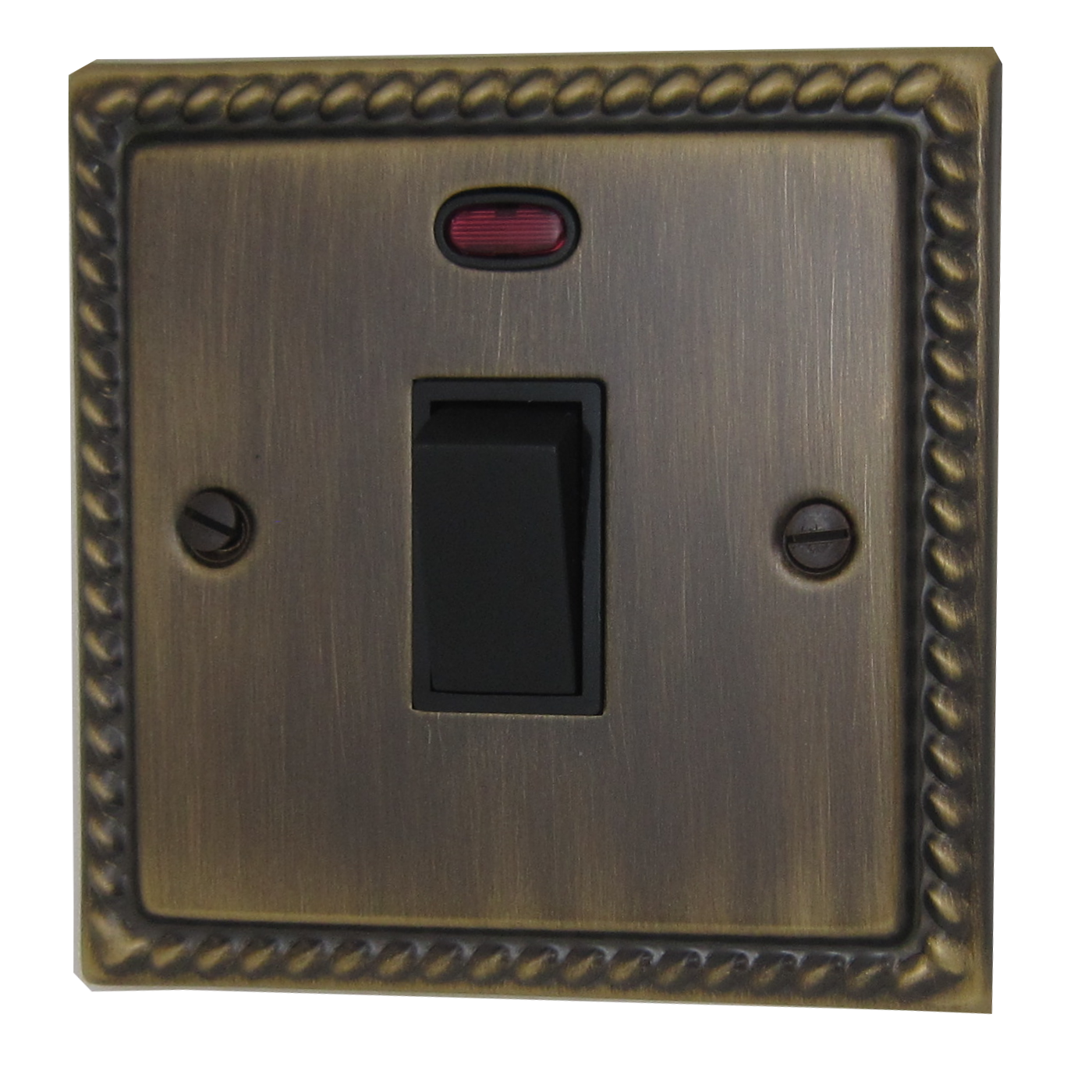 Monarch Antique Brass 20 Amp DP Switch with Neon (Black Switch)
