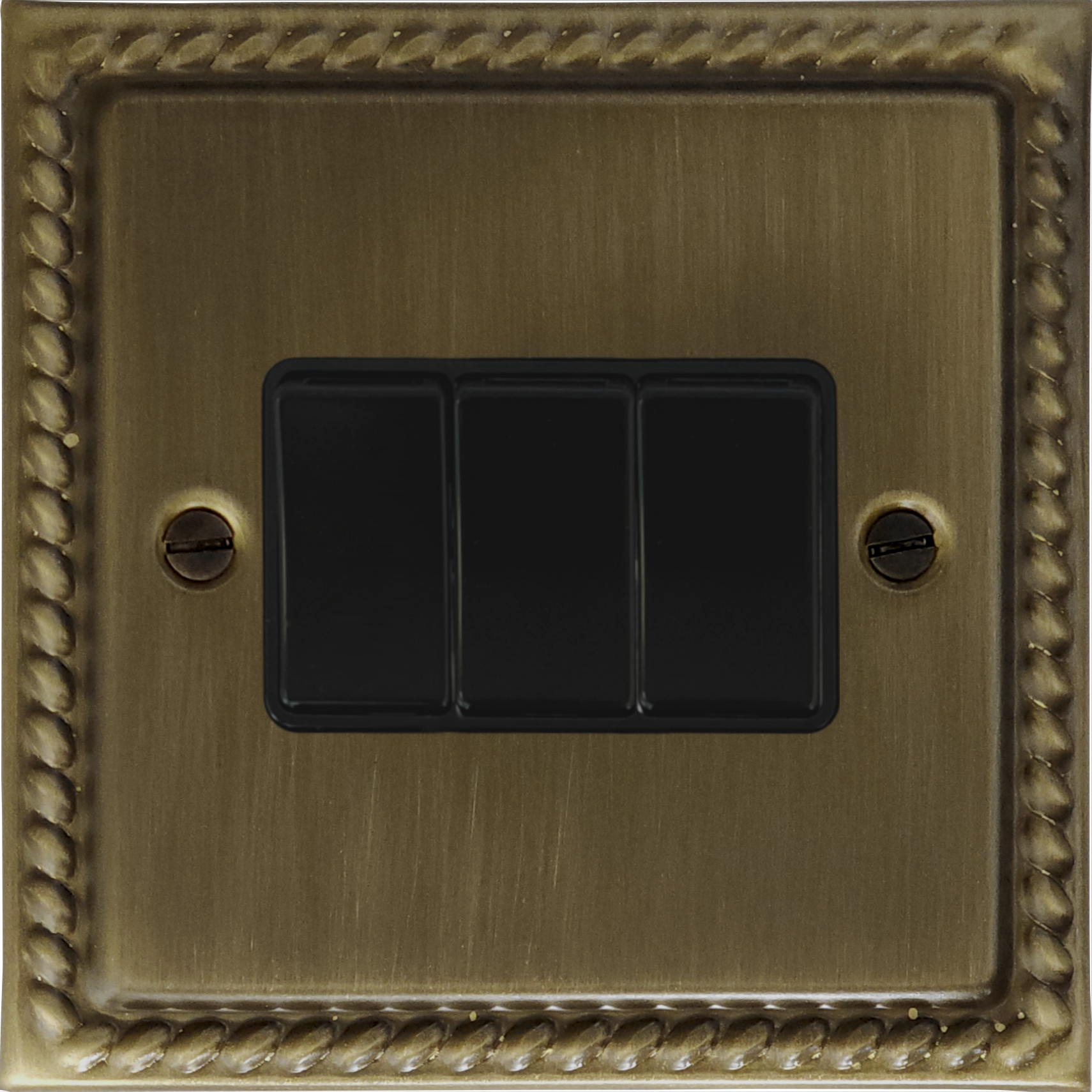 Monarch Antique Brass Light Switch (3 Gang/Black Switches) - G+H MAB3B