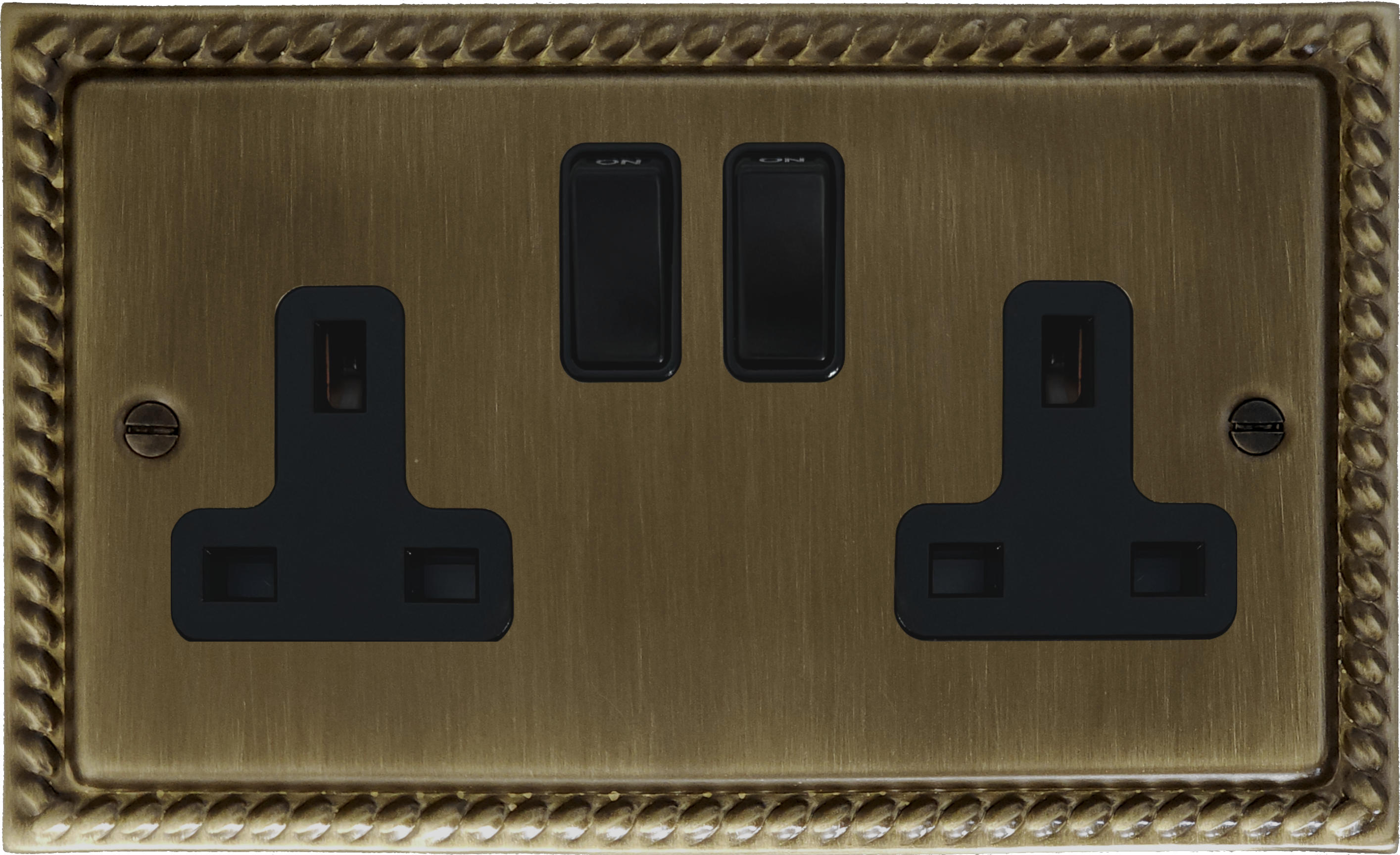 Monarch Antique Brass Socket (2 Gang/Black Switches) - G+H MAB10B