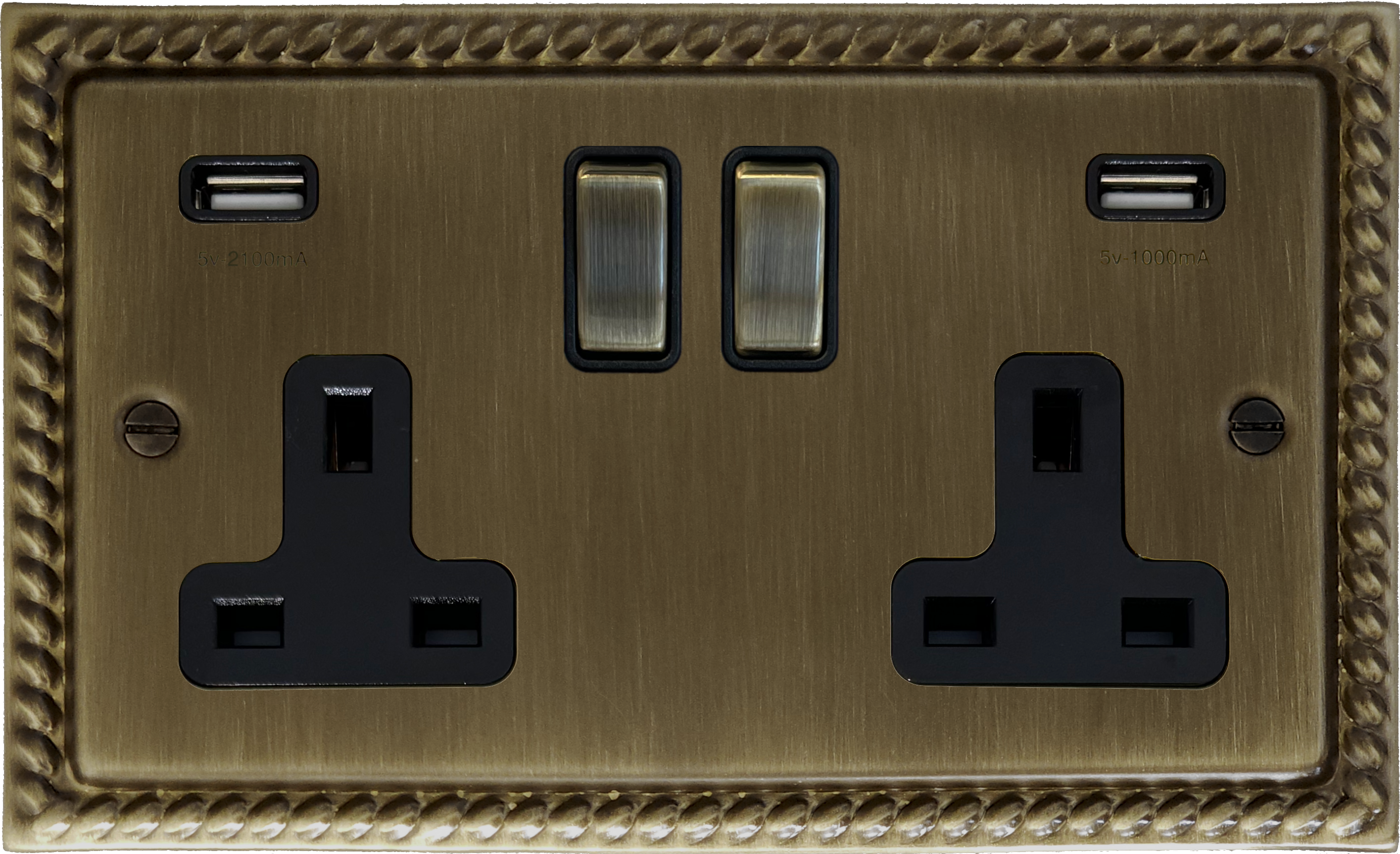 Monarch Antique Brass Socket with USB (2 Gang) - G+H MAB3910