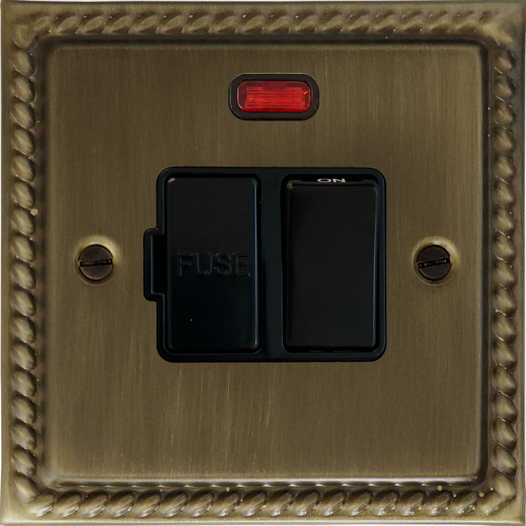 Monarch Antique Brass Switched Fused Spur with Neon (Black Switches) - G+H MAB27B