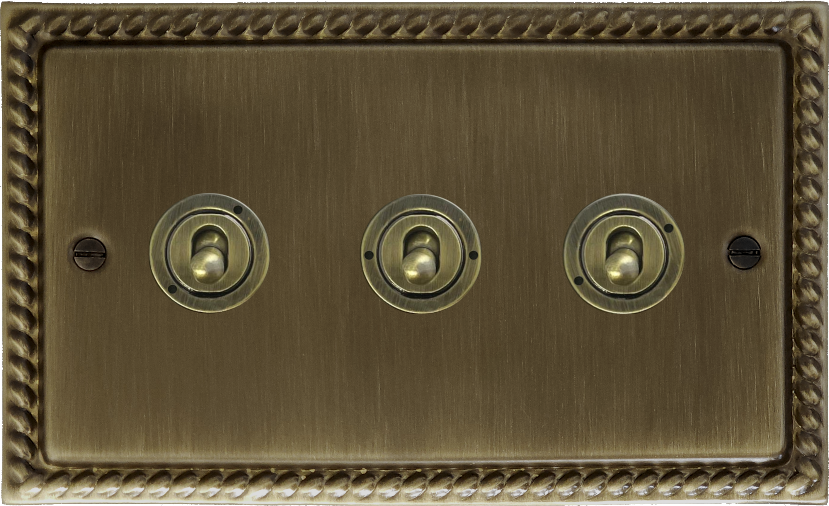 Monarch Antique Brass Toggle Switch (3 Gang) - G+H MAB383