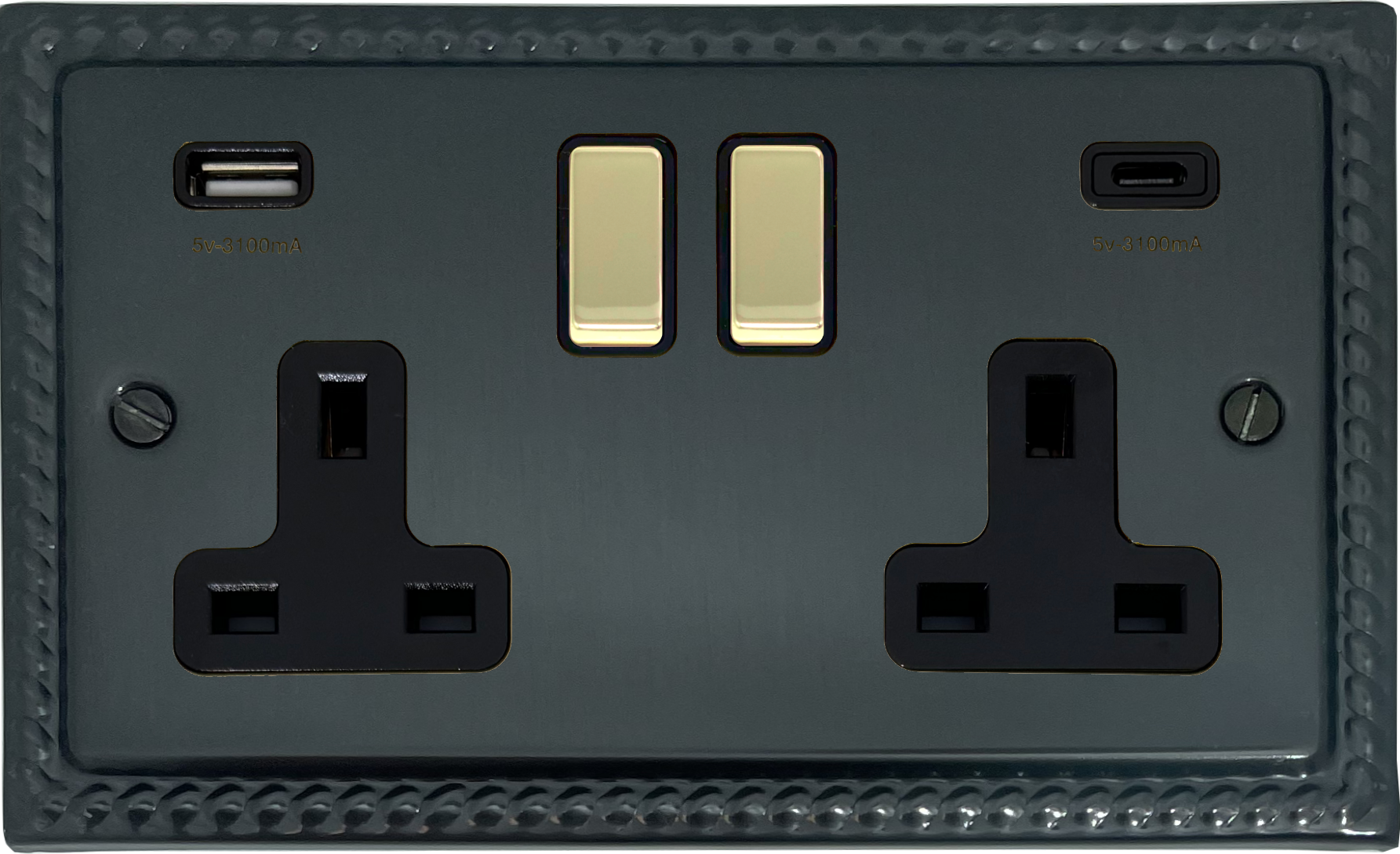 Monarch Black Bronze Socket with USB (2 Gang/USB-A and USB-C)