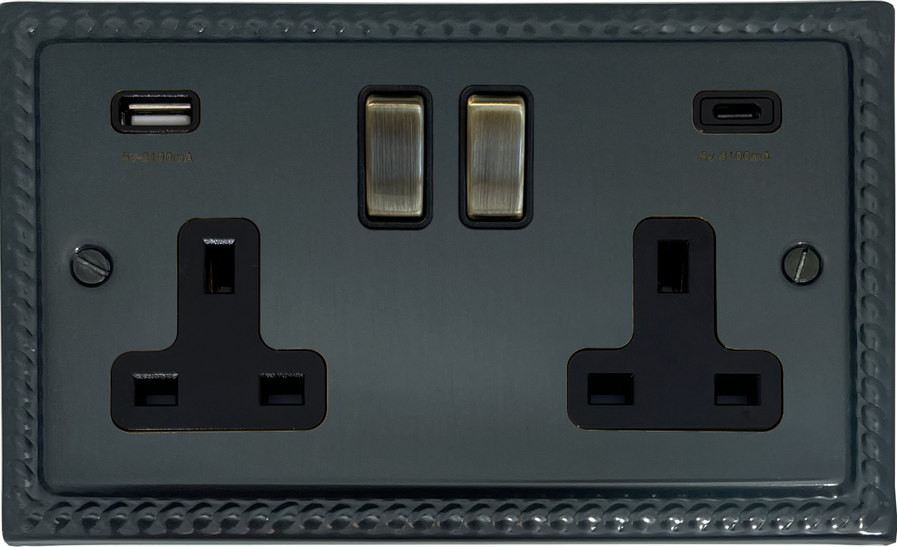 Monarch Black Bronze Socket with USB (2 Gang/USB-A and USB-C/Antique Brass Switches) - G+H MBB3911-AB