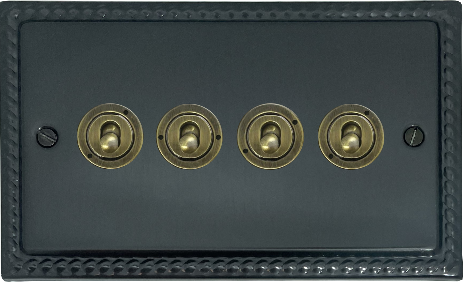 Monarch Black Bronze Toggle Switch (4 Gang/Antique Brass Switches) - G+H MBB384-AB