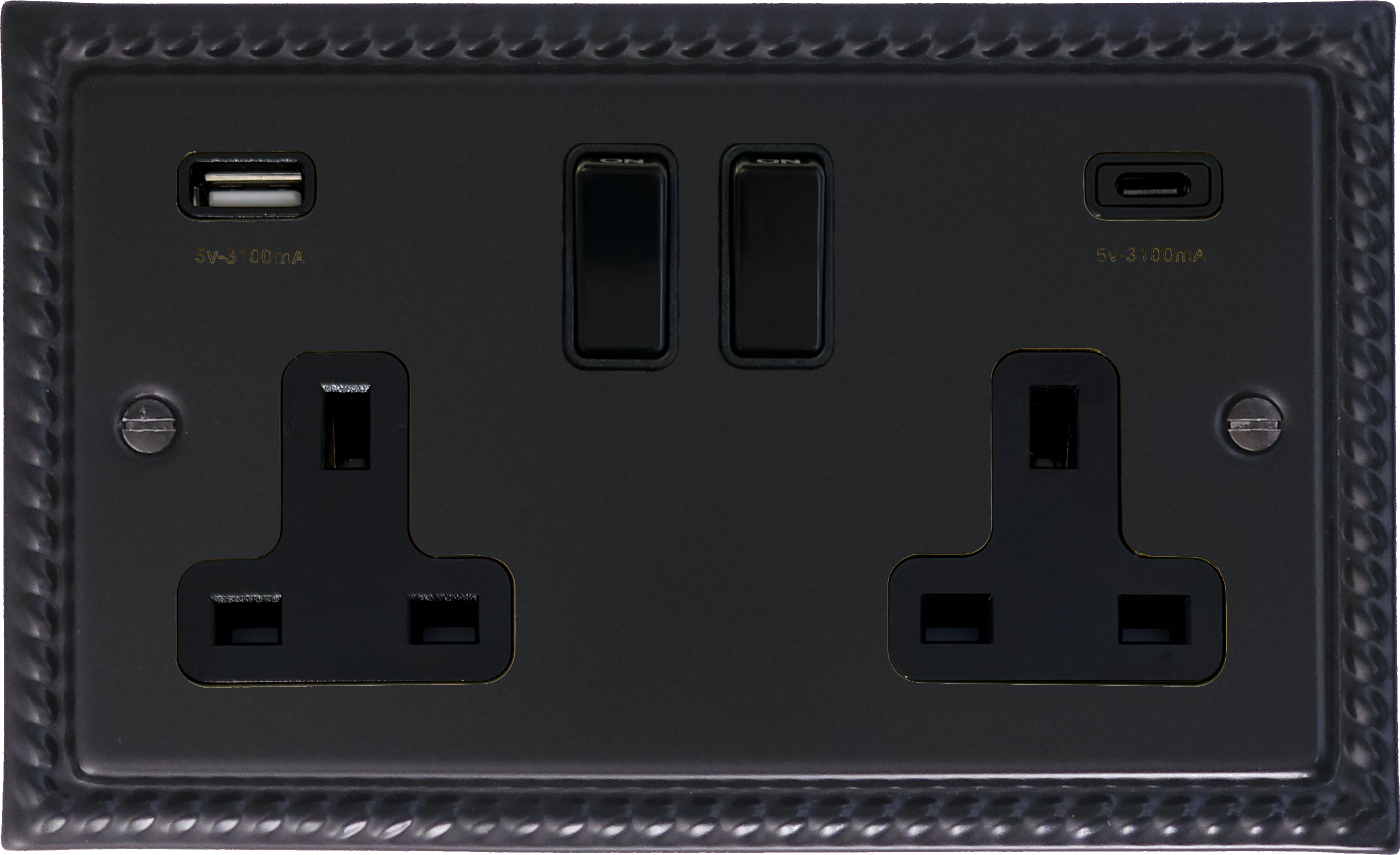 Monarch Double Socket with USB (2 Gang/USB-A and USB-C) - G+H MFB911B