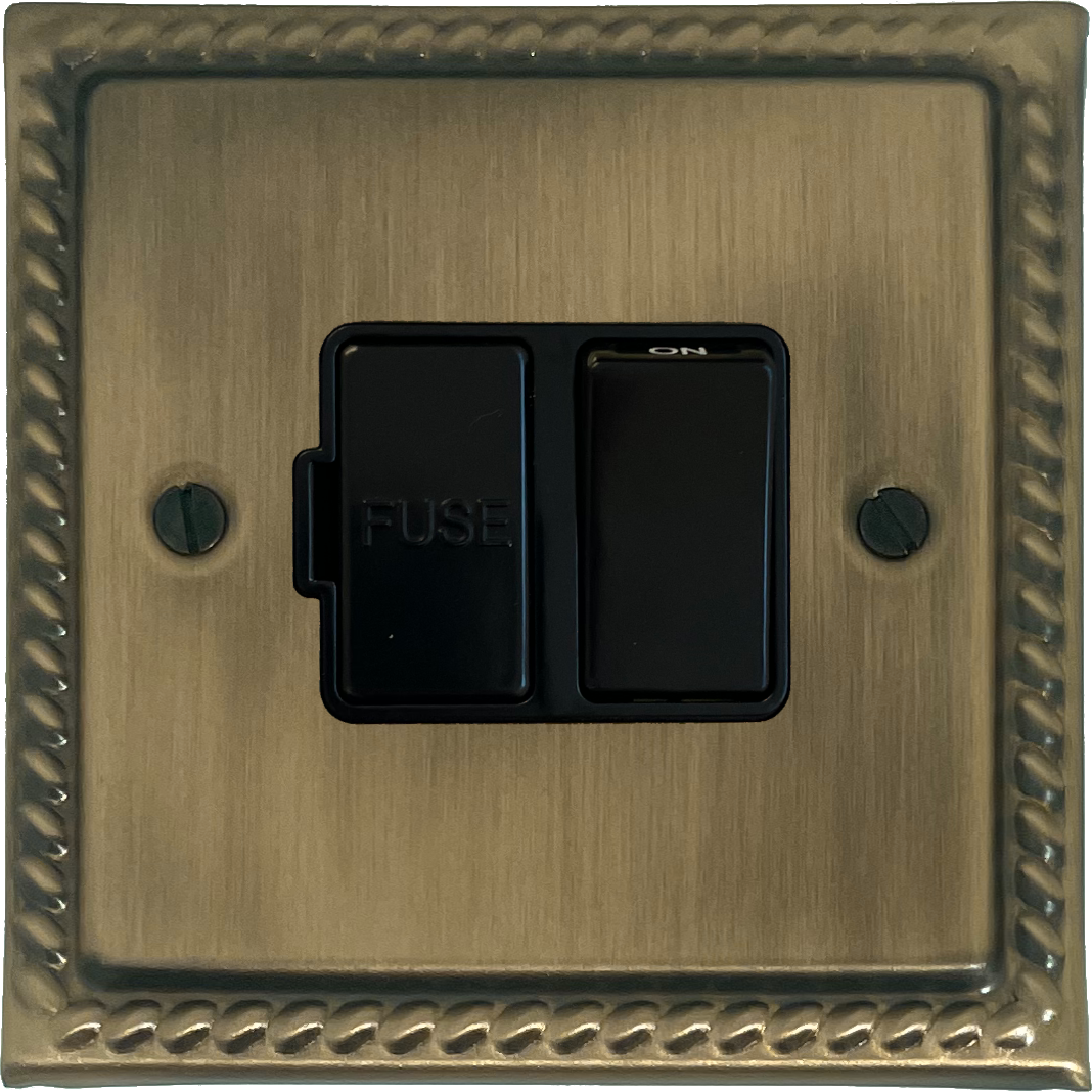 Monarch Light Antique Brass Switched Fused Spur (Black Switch) - G+H MLAB57B