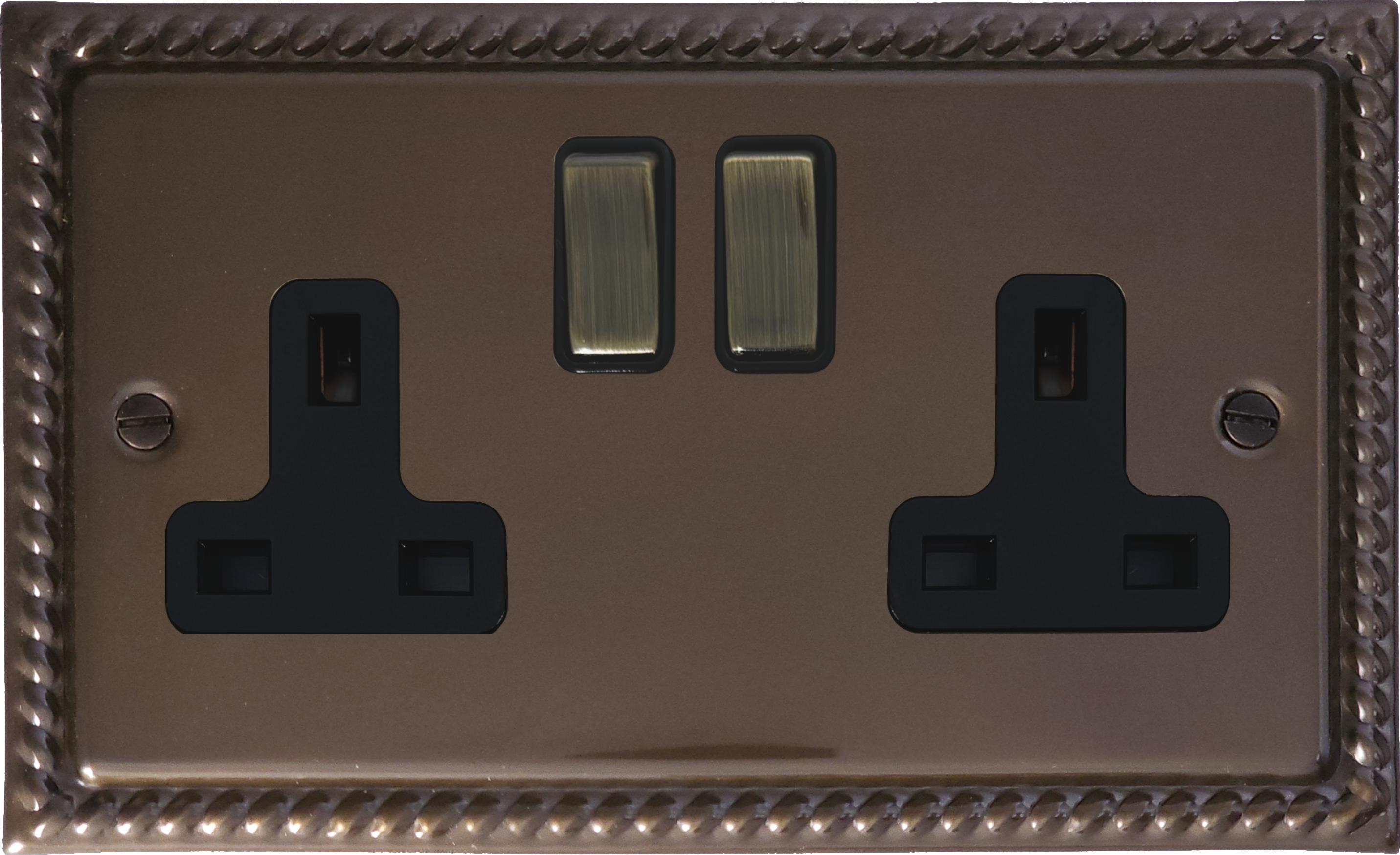 Monarch Medium Bronze Double Socket (Black Insert/Antique Brass Switches) - G+H MMBZ310-AB