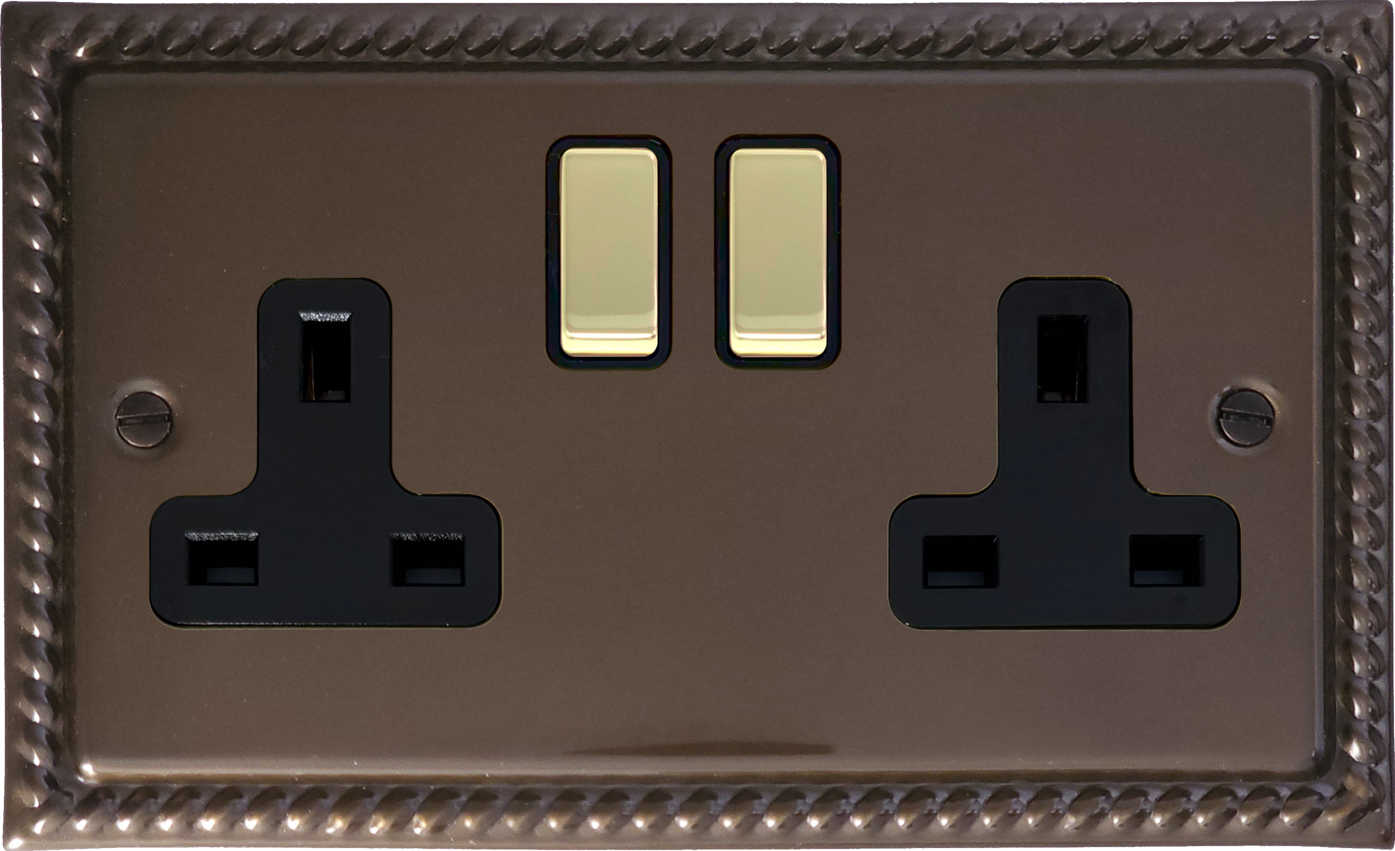 Monarch Medium Bronze Double Socket (Black Insert/Polished Brass Switches) - G+H MMBZ310-PB