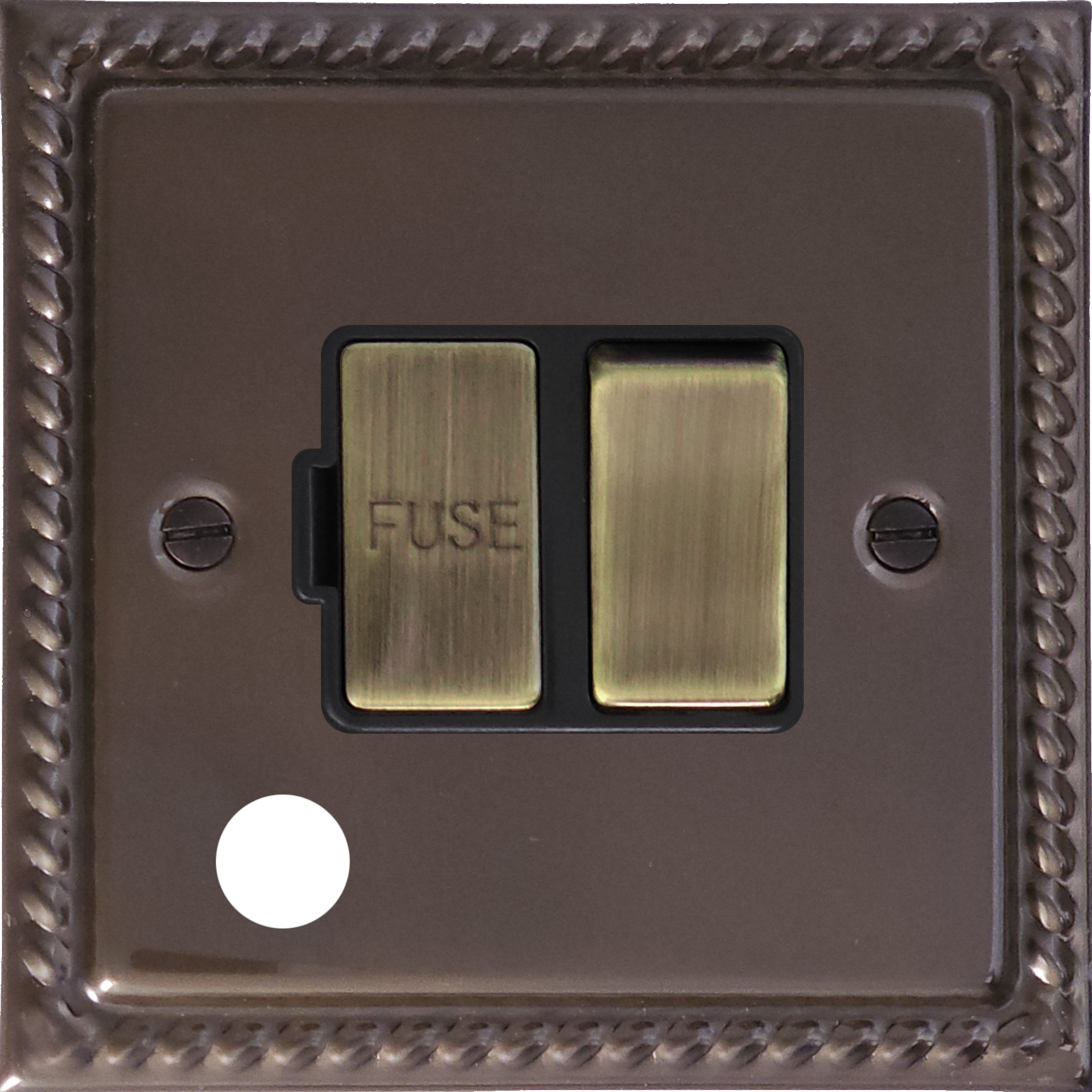 Monarch Medium Bronze Switched Fused Spur with Flex Outlet (Black Insert/Antique Brass Switch)