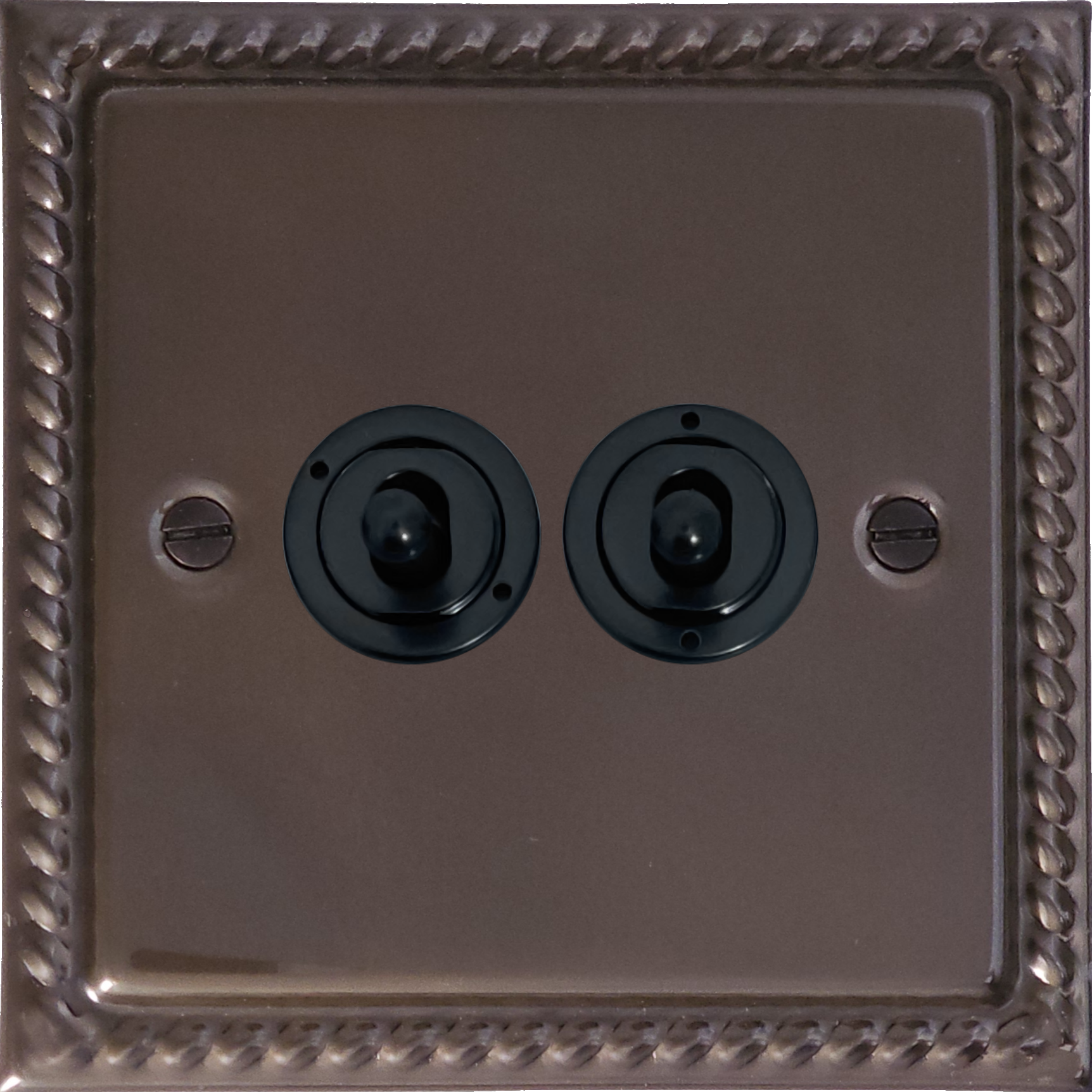 Monarch Medium Bronze Toggle Switch (2 Gang/Black Toggle)