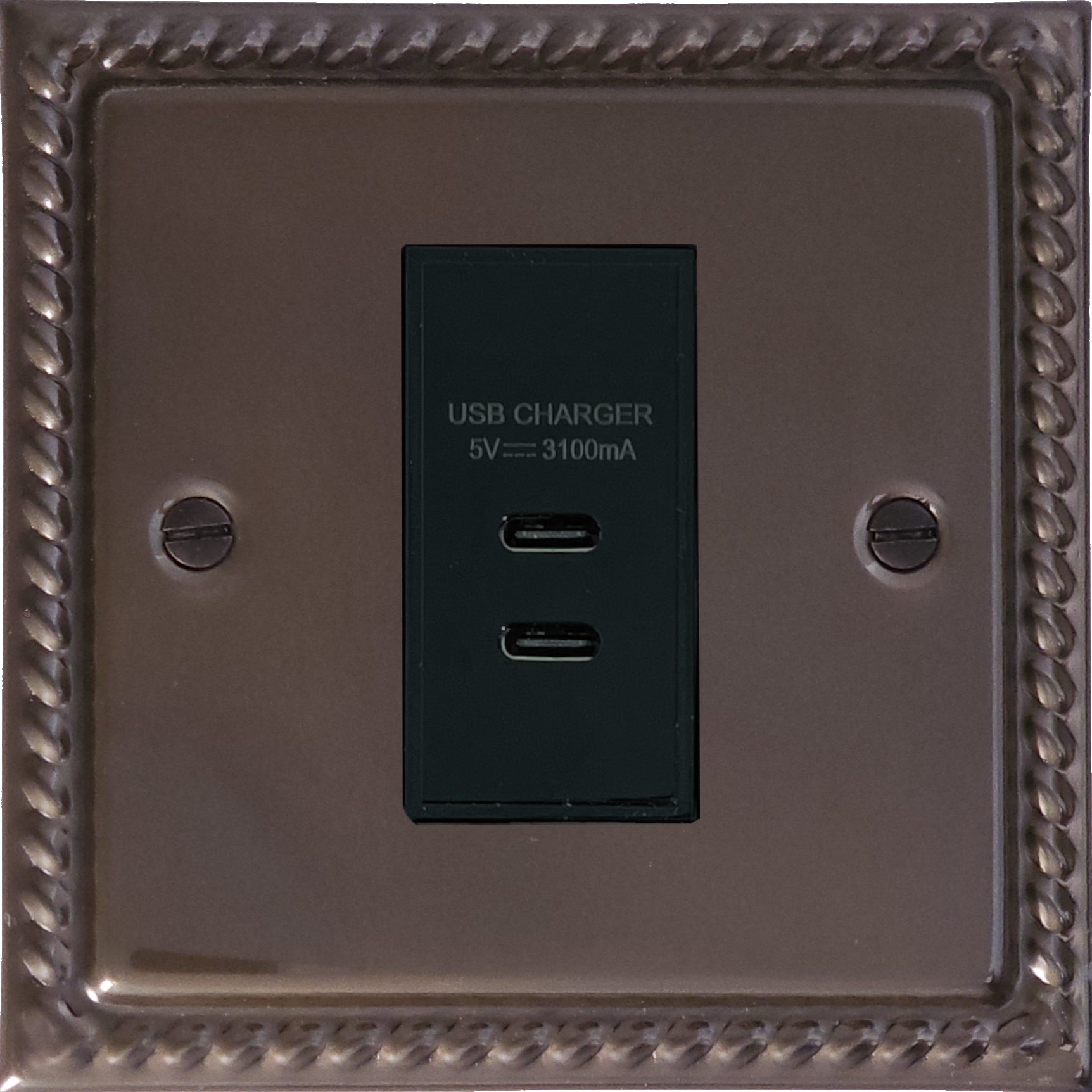 Monarch Medium Bronze USB Charger (2x USB-C) (1 Gang) - G+H MMBZ42B