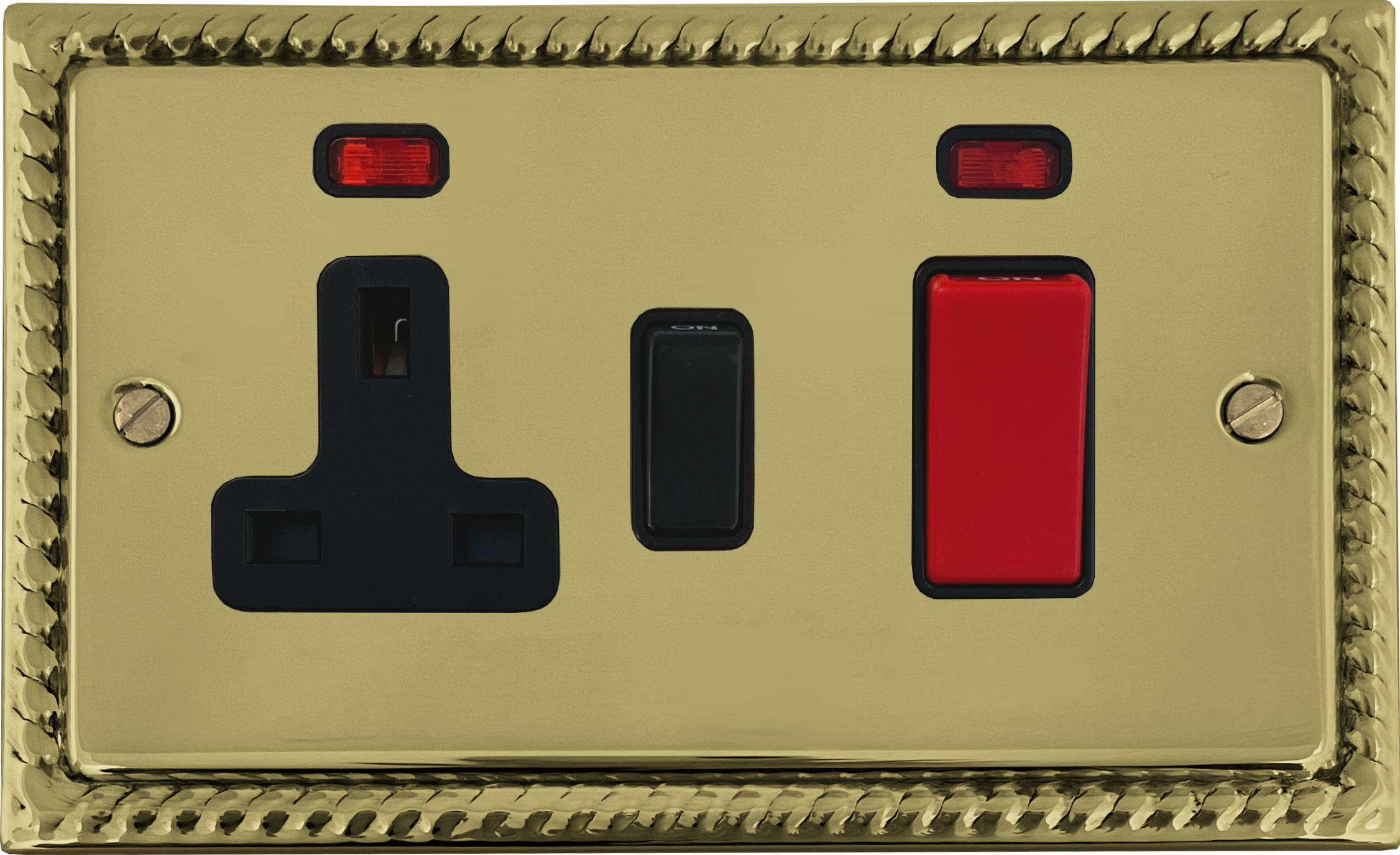 Monarch Polished Brass Cooker Switch with Socket (Black Switch) - G+H MB29B