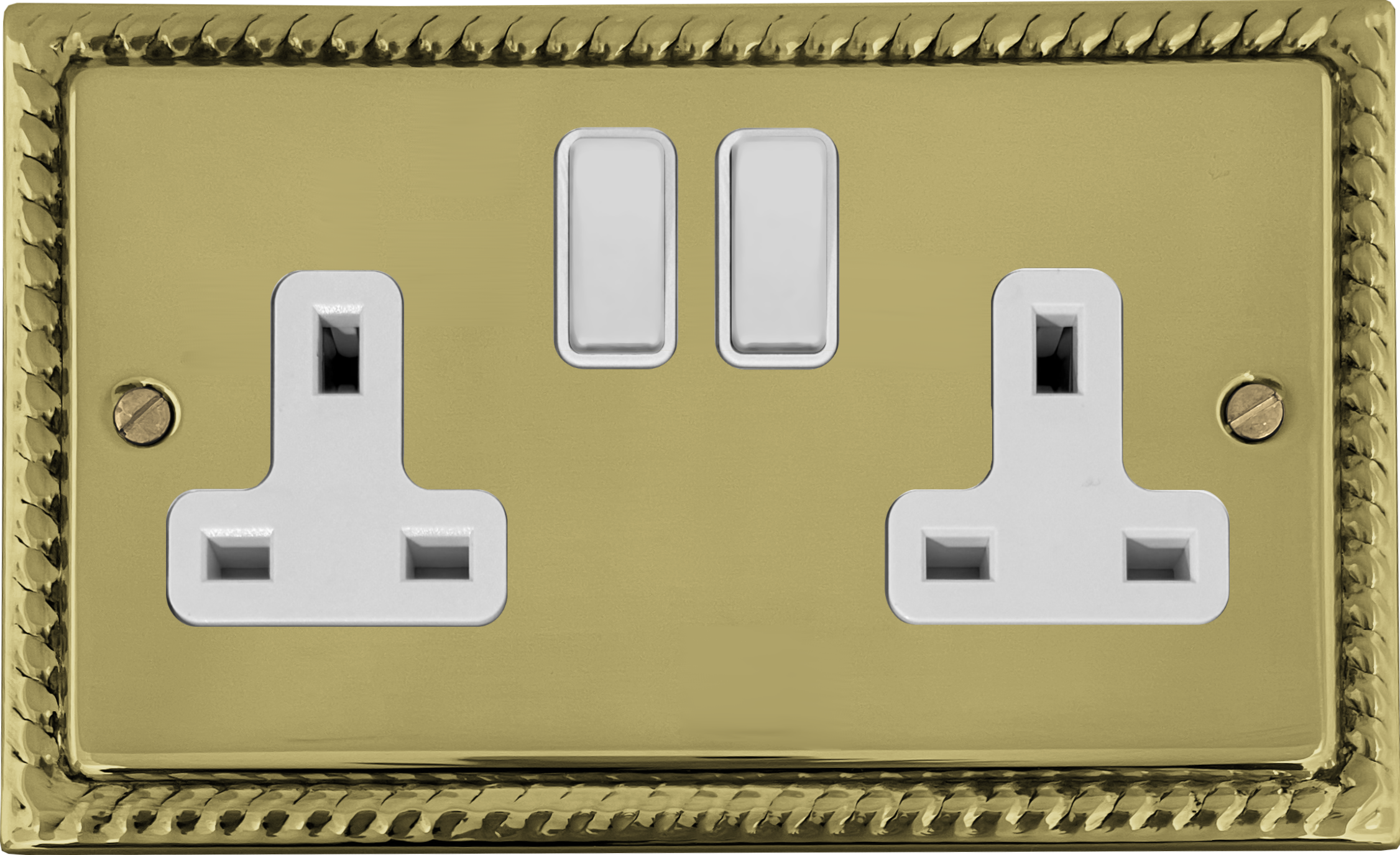 Monarch Polished Brass Double Socket (White Switches) - G+H MB10W