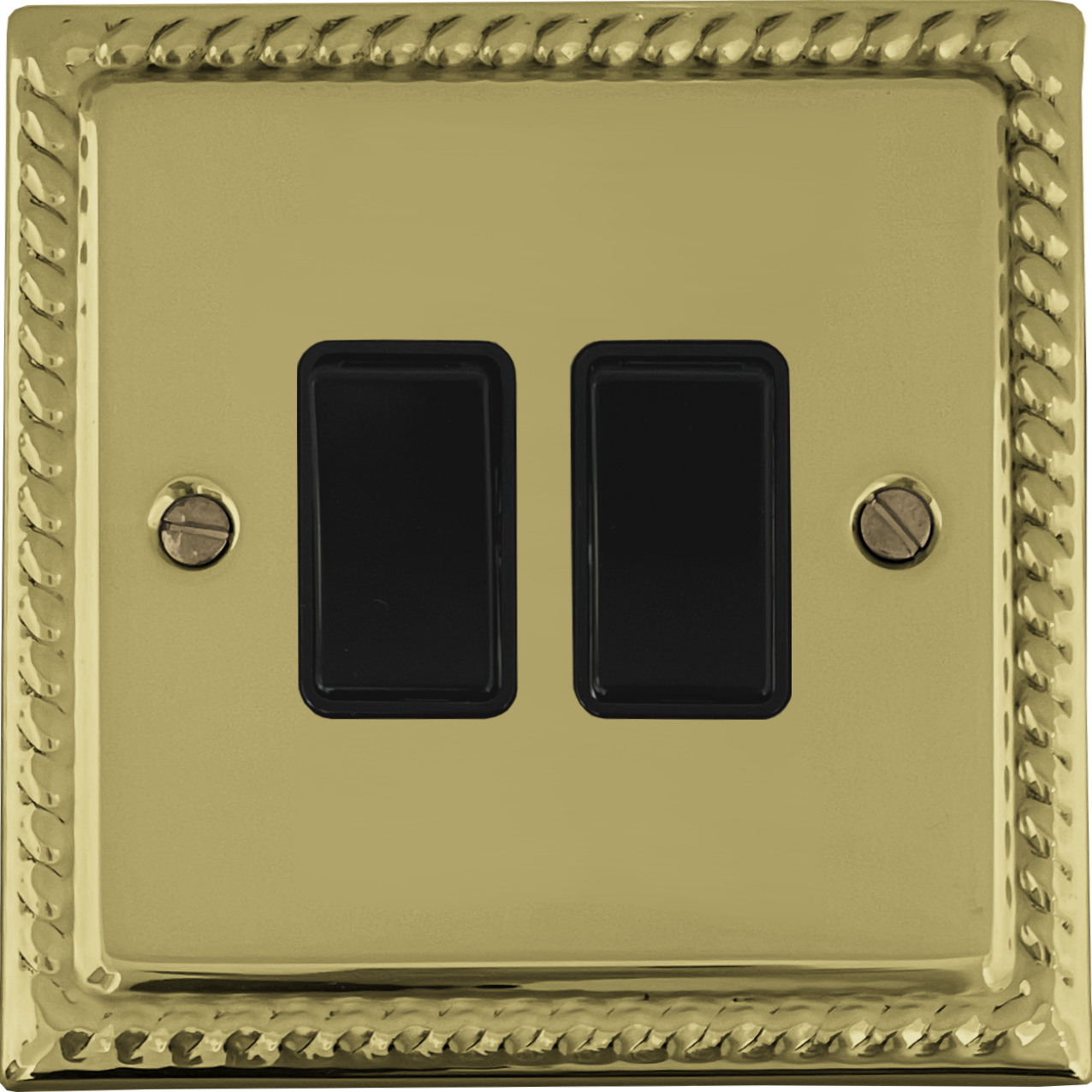 Monarch Polished Brass Light Switch (2 Gang/Black Switches) - G+H MB2B