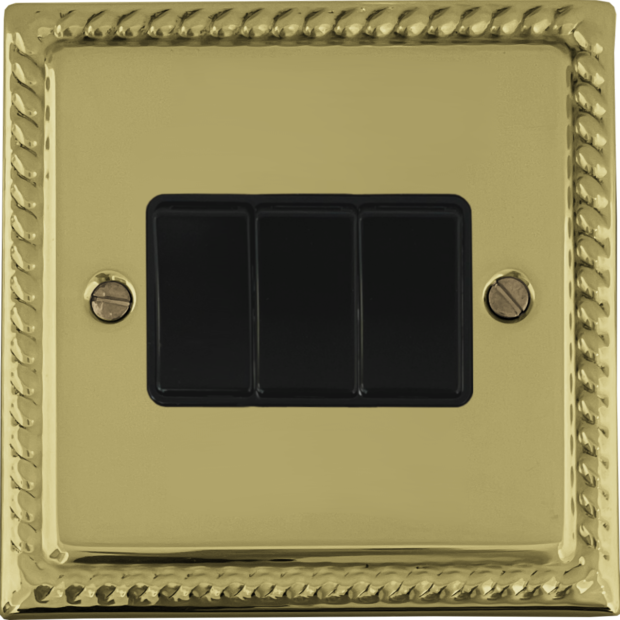 Monarch Polished Brass Light Switch (3 Gang/Black Switches) - G+H MB3B