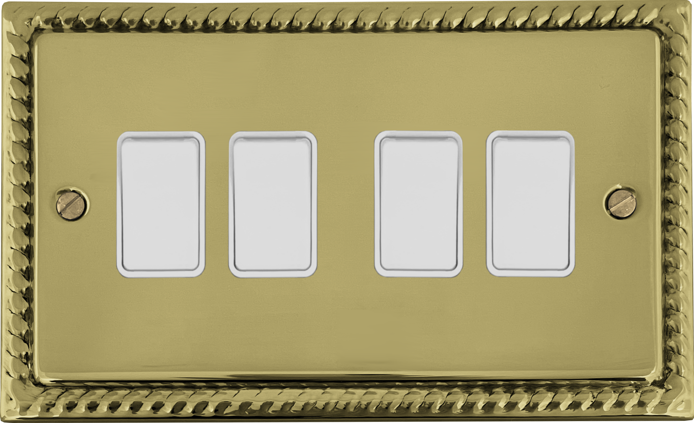 Monarch Polished Brass Light Switch (4 Gang/White Switches) - G+H MB4W
