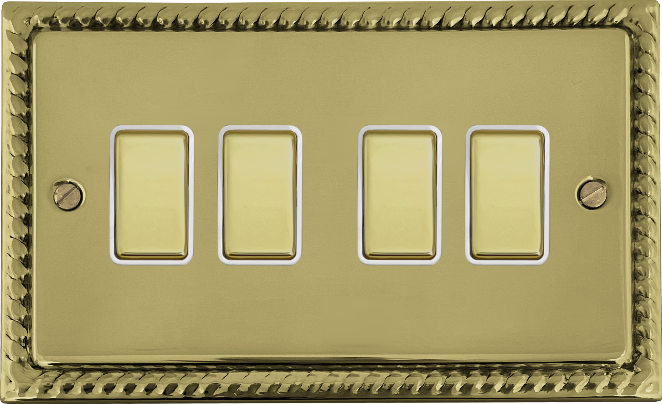 Monarch Polished Brass Switch (4 Gang/White Inserts)