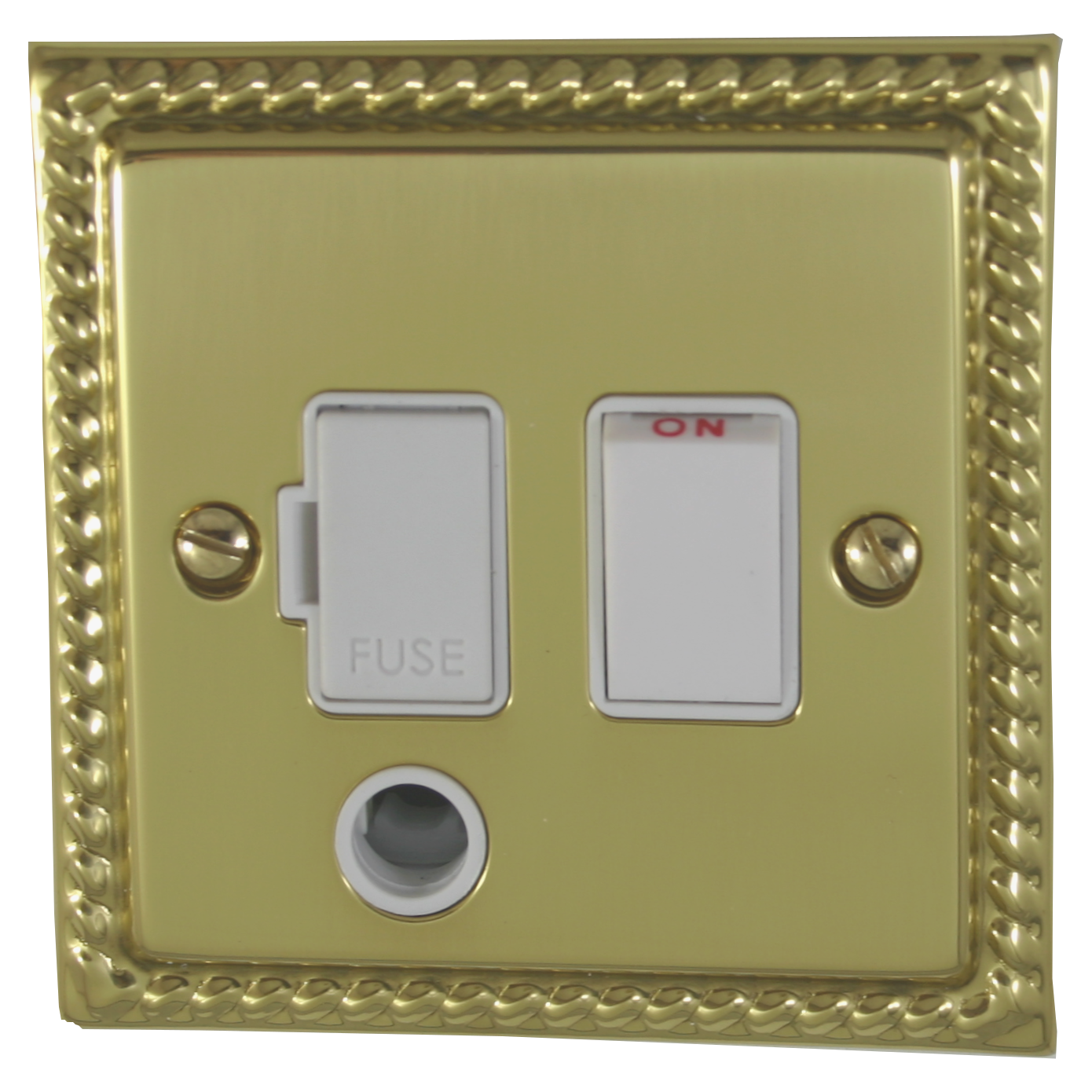Monarch Polished Brass Switched Fused Spur with Flex Outlet (White Switch) - G+H MB56W