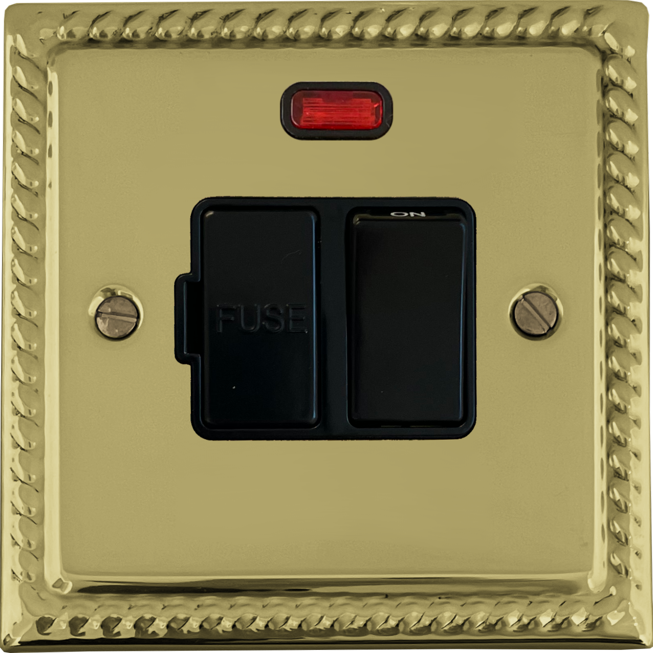 Monarch Polished Brass Switched Fused Spur with Neon (Black Switch) - G+H MB27B
