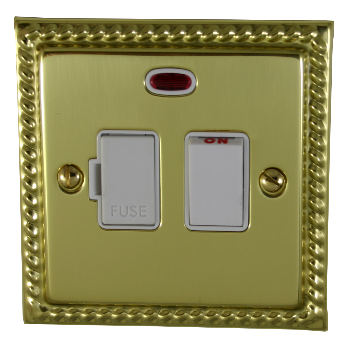 Monarch Polished Brass Switched Fused Spur with Neon (White Switch) - G+H MB27W