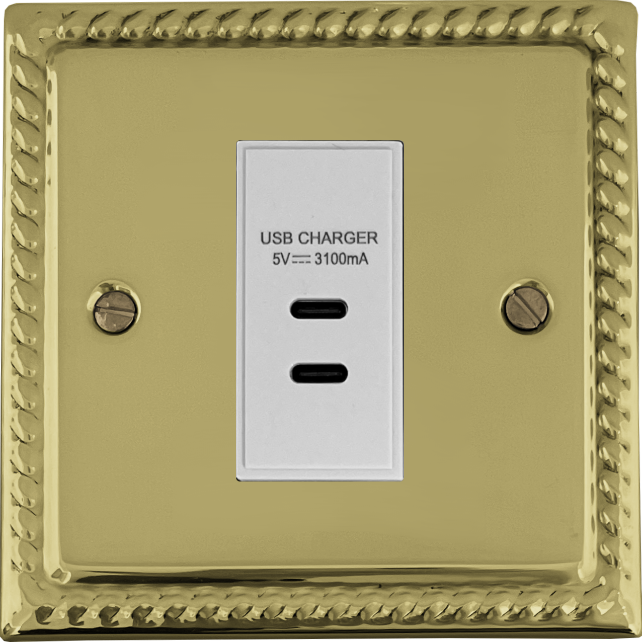 Monarch Polished Brass USB Charger (2x USB-C) (1 Gang/White Insert) - G+H MB42W