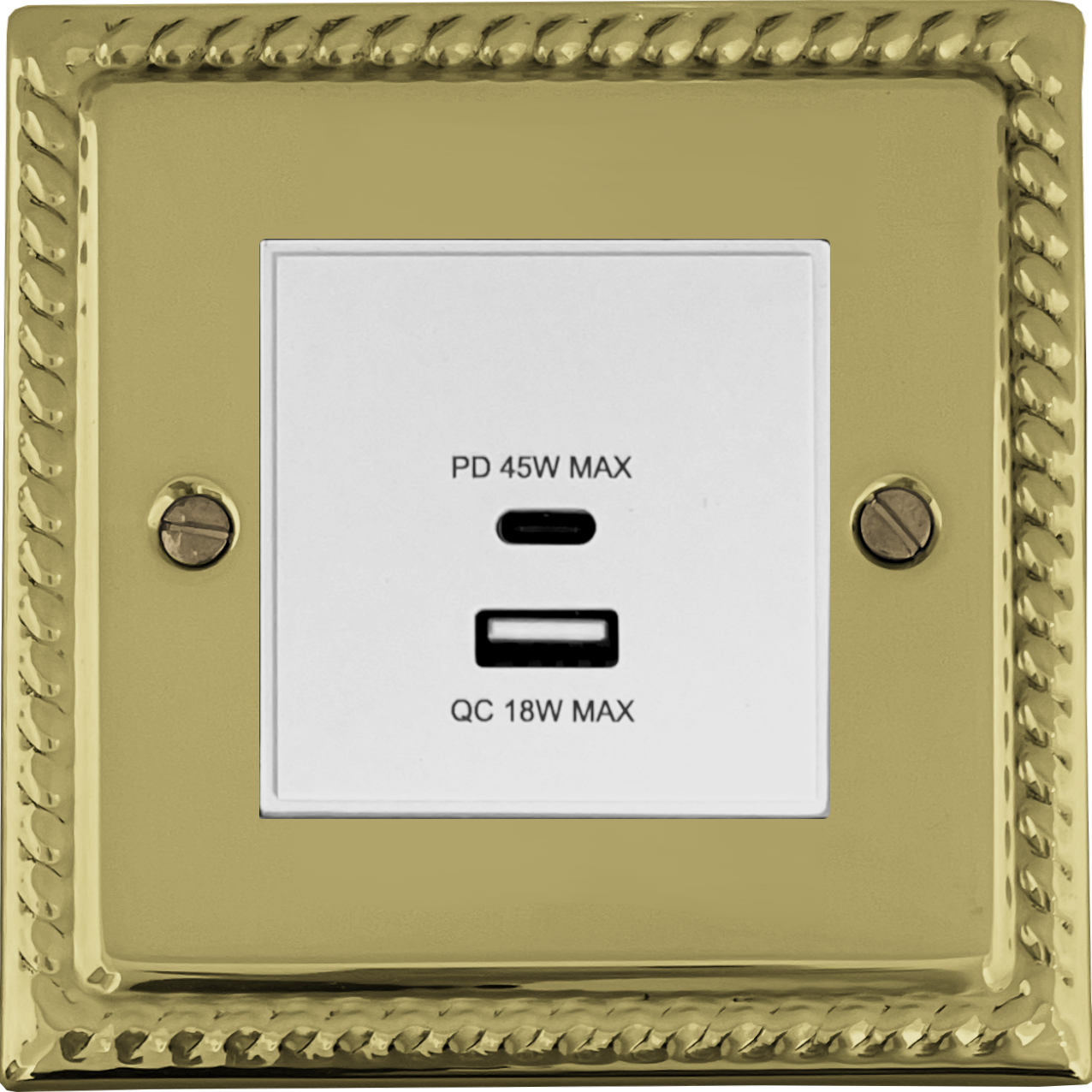 Monarch Polished Brass USB Charger (Dual USB A + C Quick Charge) (1 Gang/White Insert) - G+H MB43W