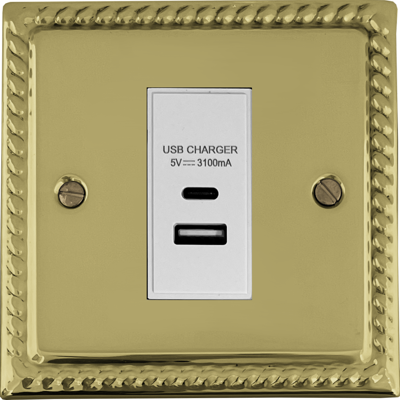 Monarch Polished Brass USB Charger (USB-A and USB-C) (1 Gang/White Insert) - G+H MB41W