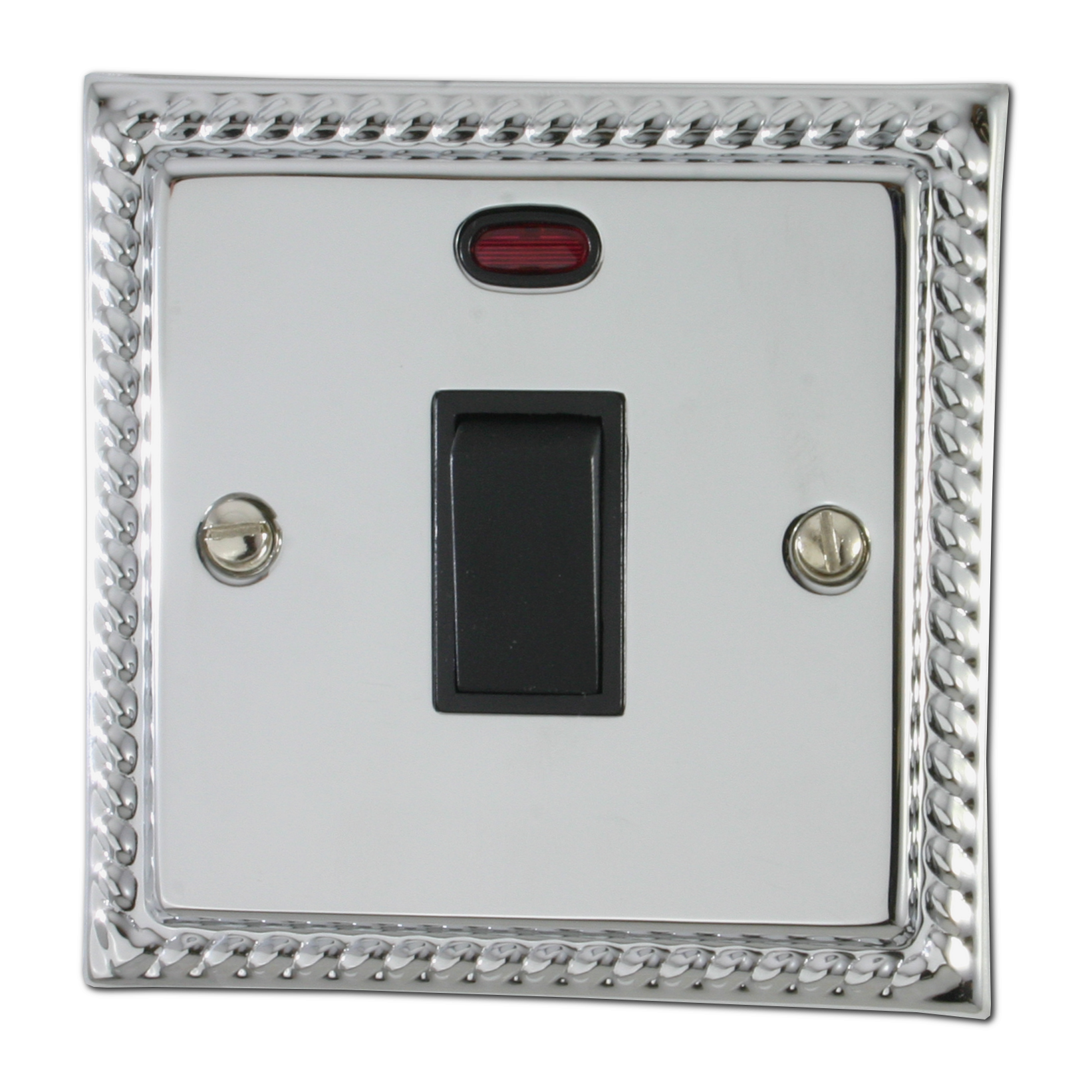 Monarch Polished Chrome 20A DP Switch with Neon (Black Switch) - G+H MC26B