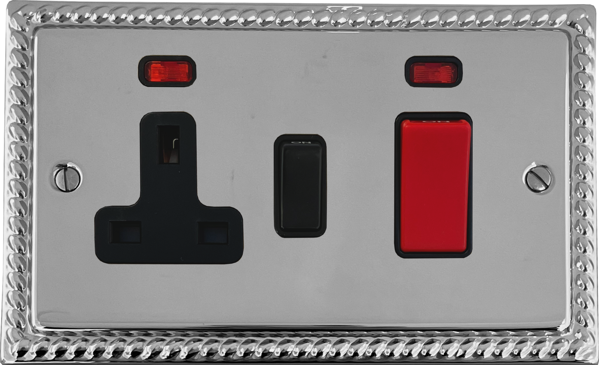 Monarch Polished Chrome Cooker Switch with Socket (Black Switch) - G+H MC29B